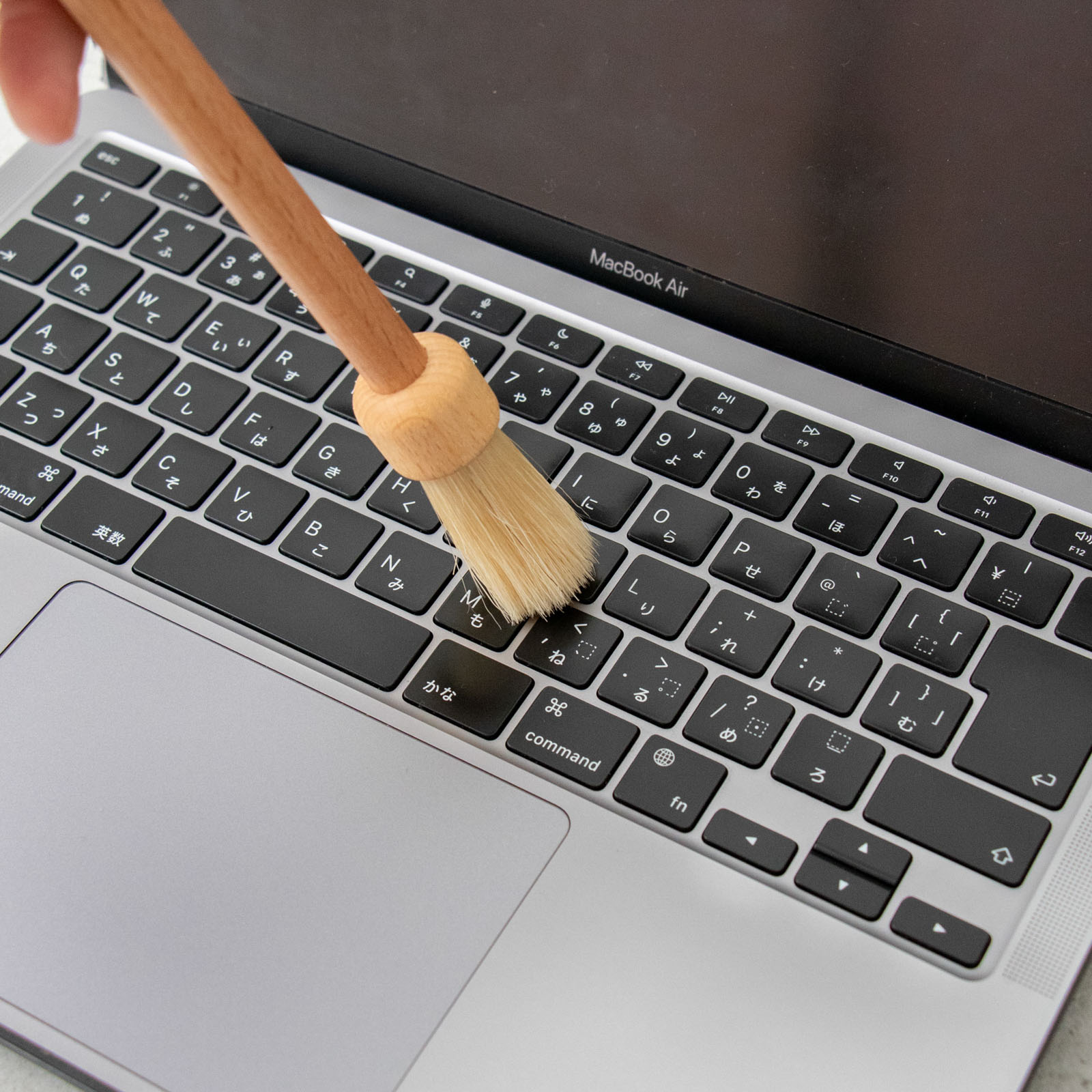 たっぷりと束ねられた、まっすぐでハリのある豚毛が、家具の角やキーボードまわりなど、すき間にたまったチリやホコリをしっかりキャッチします。