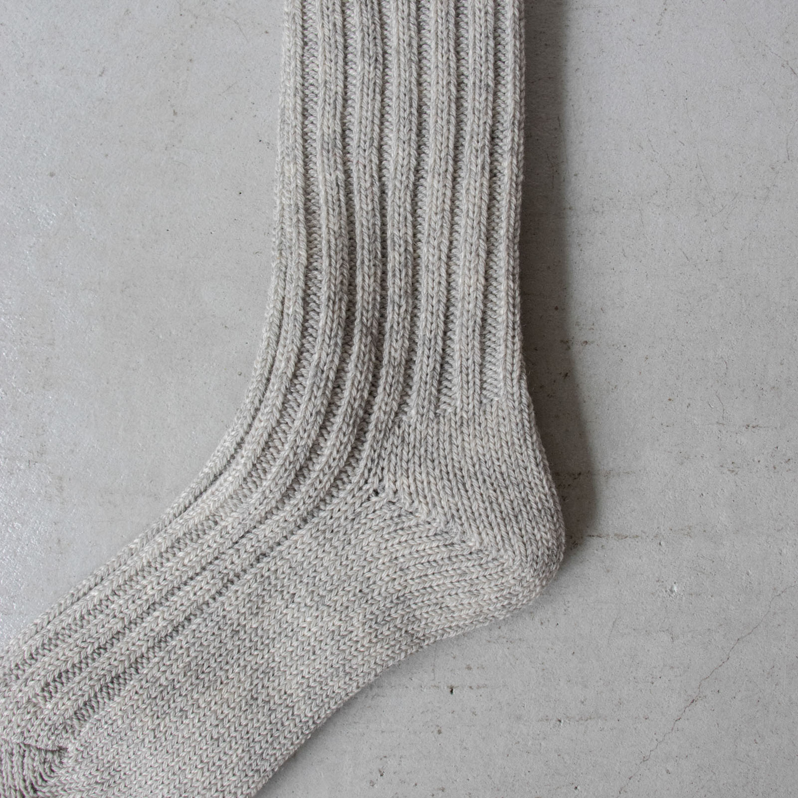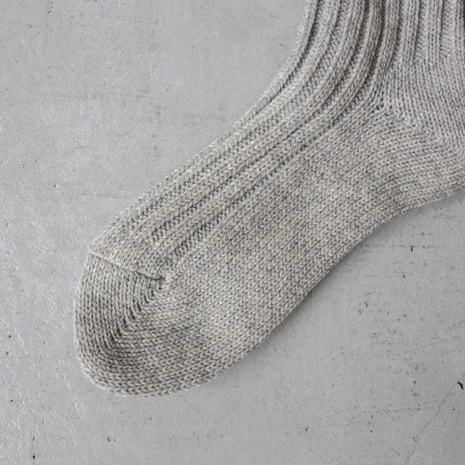 国内では扱う職人が少ない、希少な旧式のローゲージ編み機を使って、冬用のあたたかいソックスをつくるために、空気を含ませるように、ゆっくりと丁寧に編み上げられています。