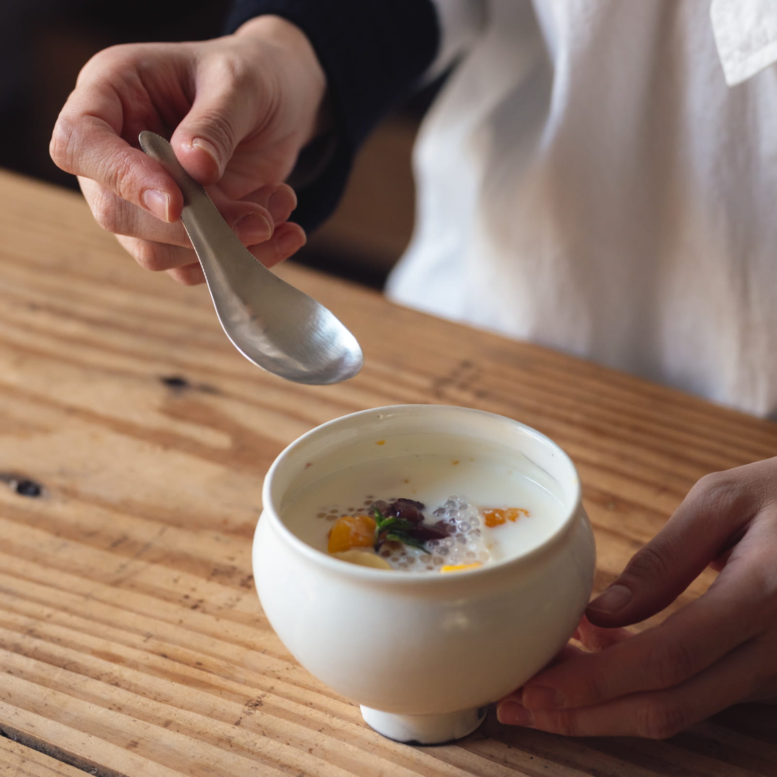 小レンゲは、杏仁豆腐や豆花など食後のおやつや、朝のヨーグルトを食べる時にもちょうどいいサイズ感。口当たりもやさしく、デザートを楽しむ時間を引き立ててくれます。