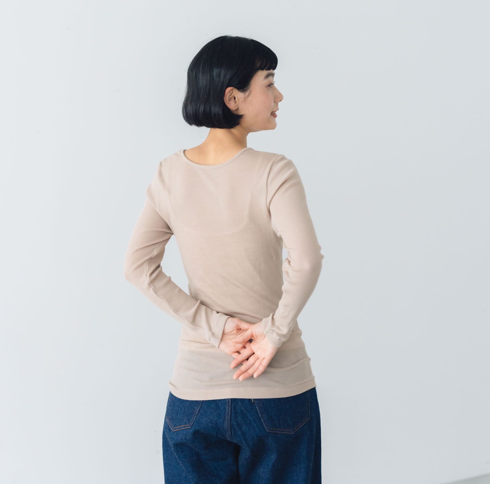 ウールってチクチクするイメージを持っている方も多いはず。そこで、チクチクせず滑らかで且つ着膨れせず薄手なものを、というわがままを職人さんに全部お伝えし出来上がったのが「しっとりなめらか、メリノウール100%レギンス」。その名の通り、ウール100%と思えないほど、滑らかで優しい肌触りに仕上がっています。
