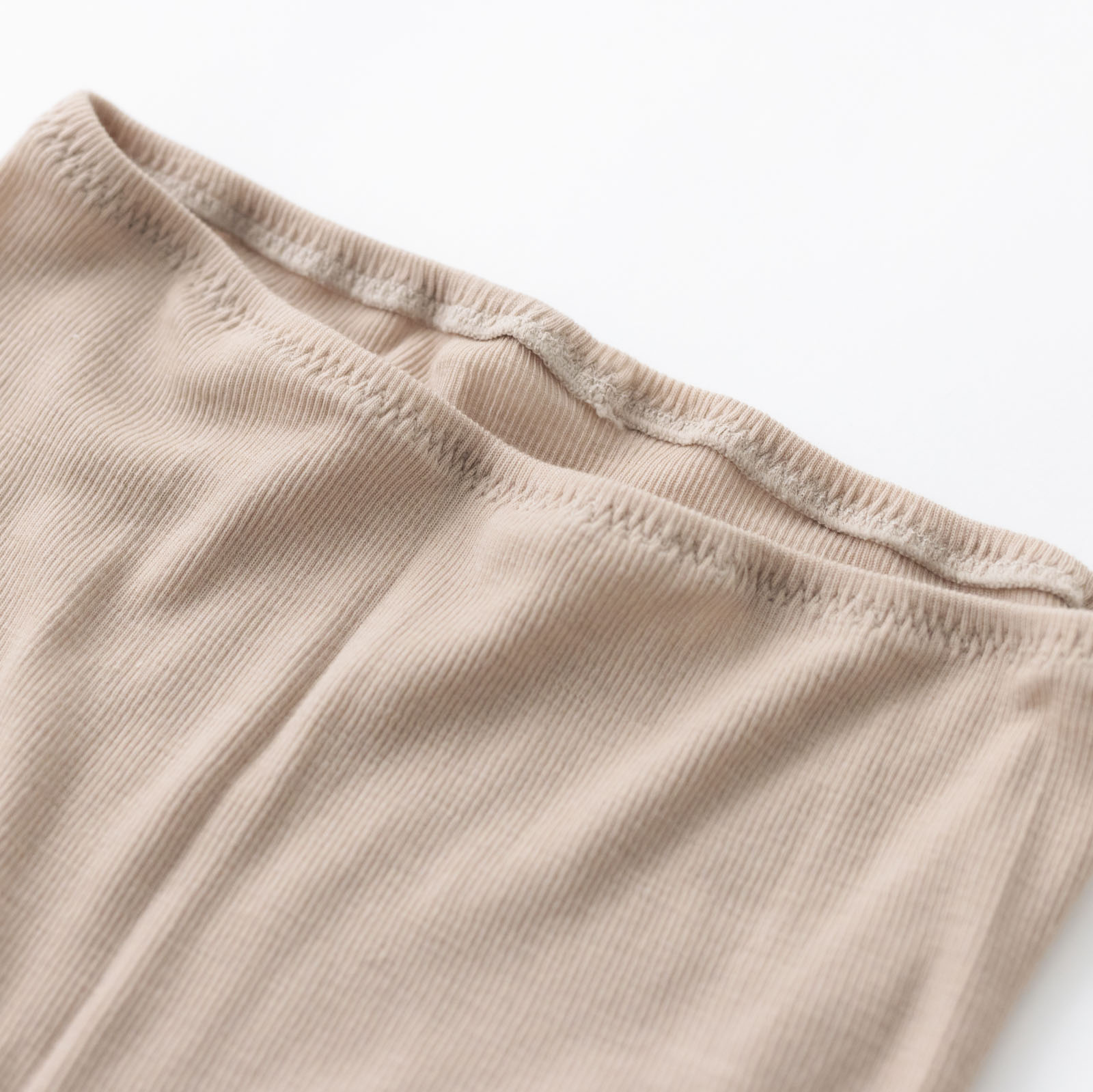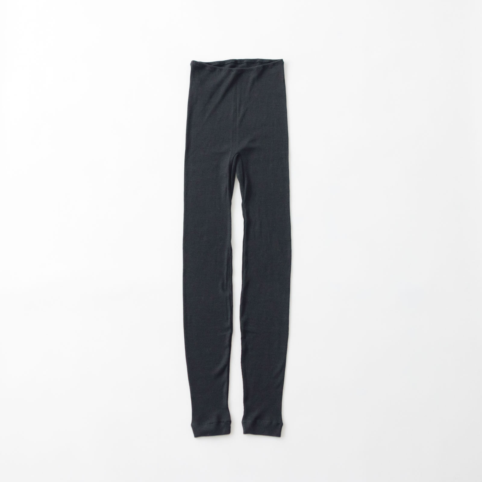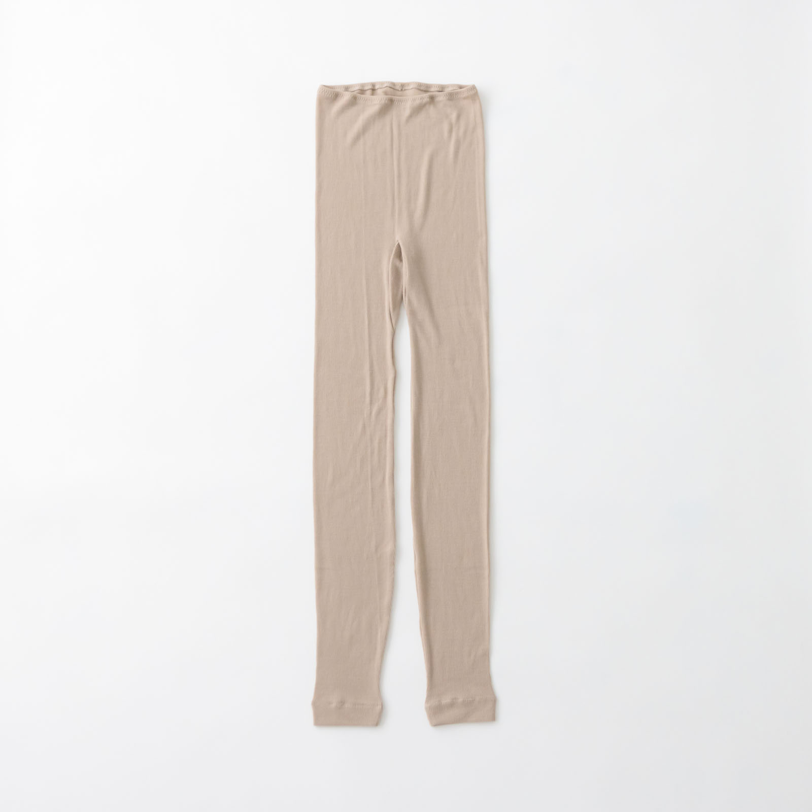 細いリブは伸縮性に優れながら見た目も上品。スカートの下に重ねてちらっと見えてもOKなデザイン。1枚あると無いでは大違いの、頼りになるレギンスです。