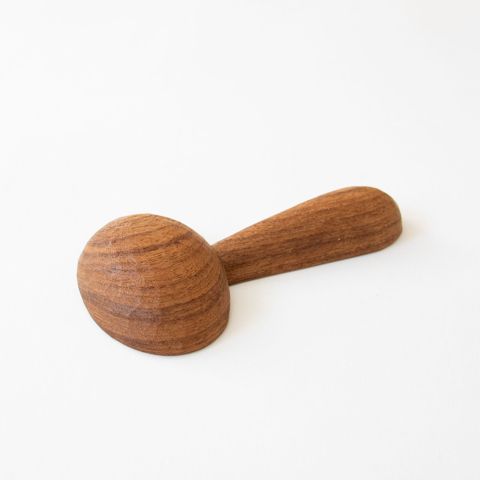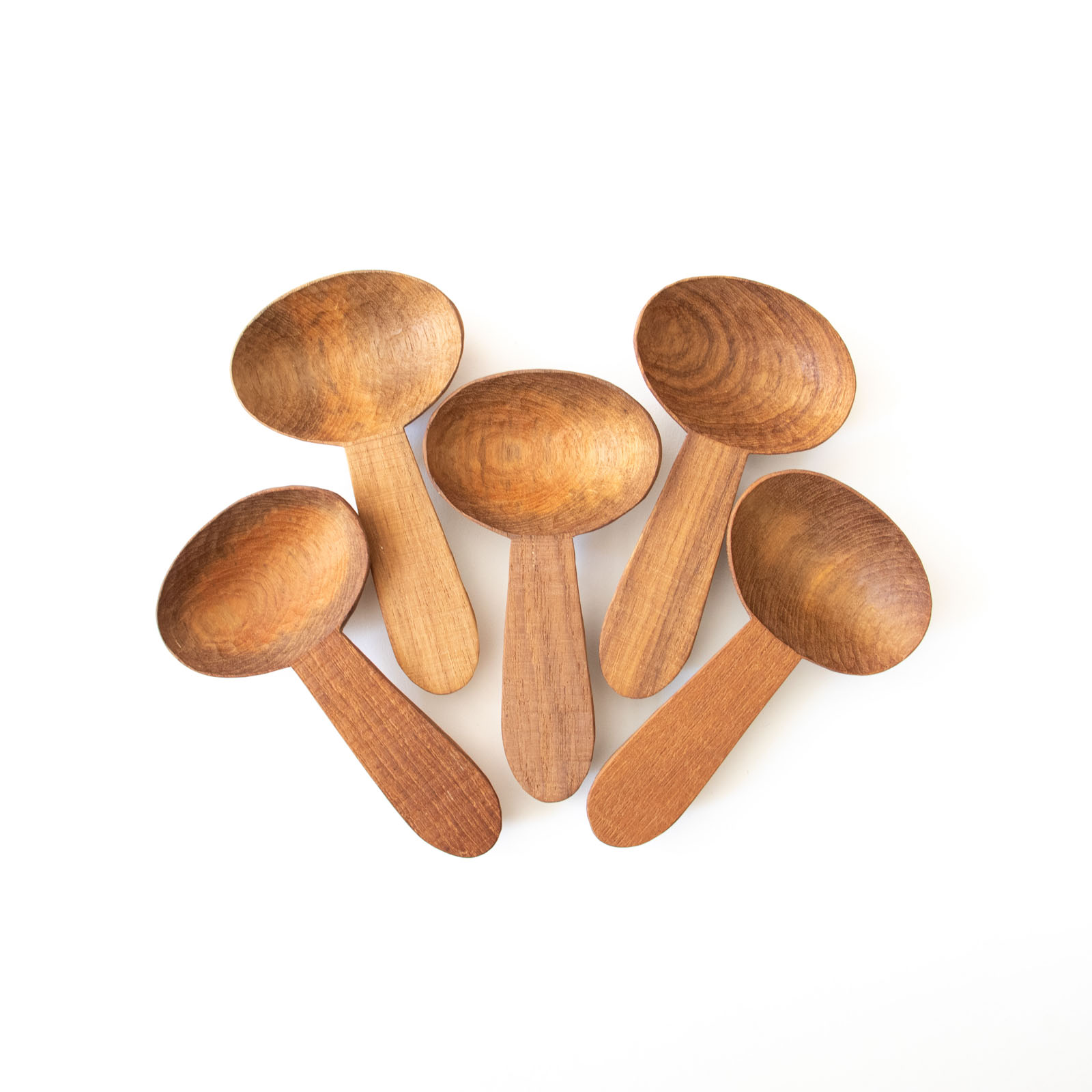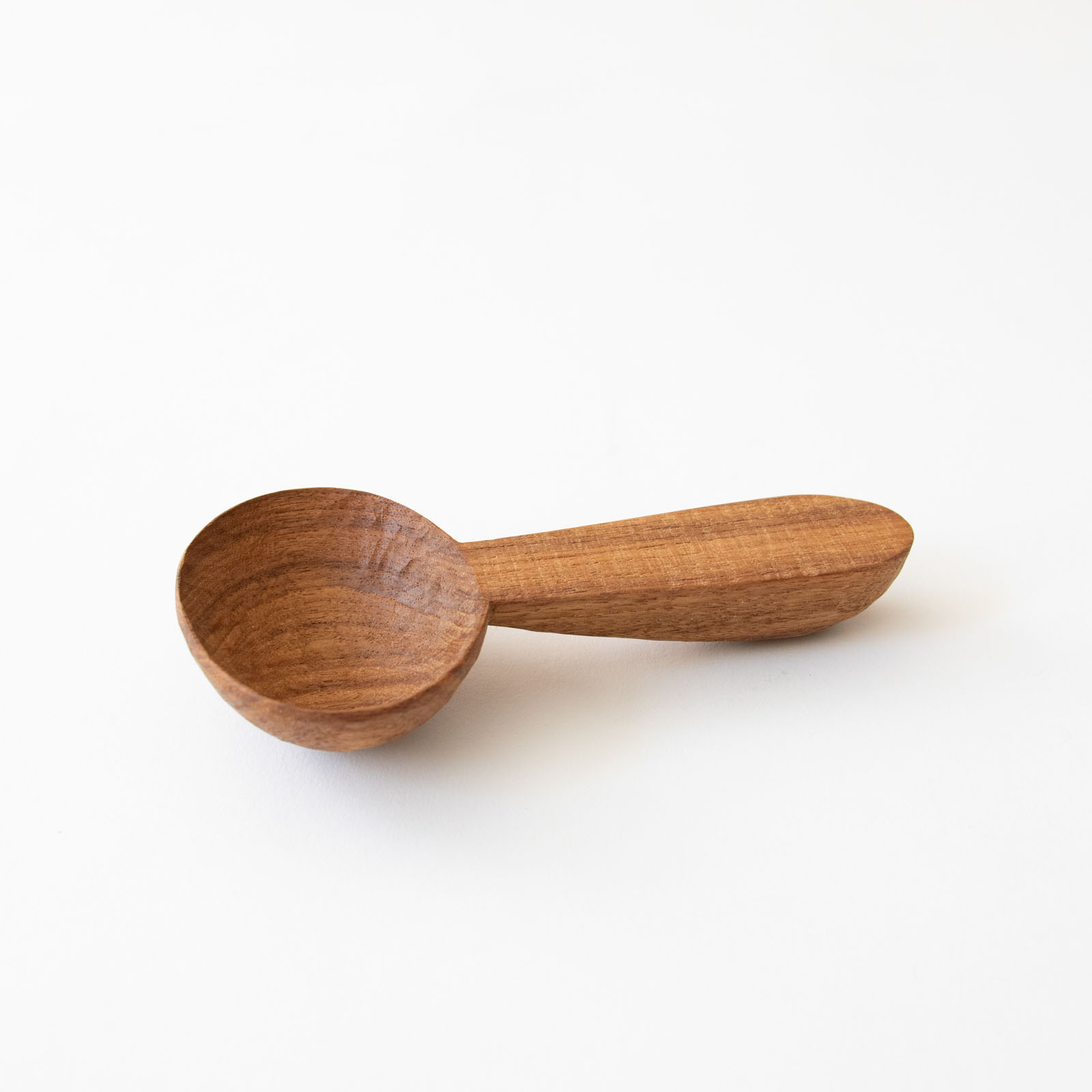 工房イサドの本田さんが、チーク材の雰囲気に合う「原始的な道具」のイメージで制作したという「ぷりぷりスプーン」。