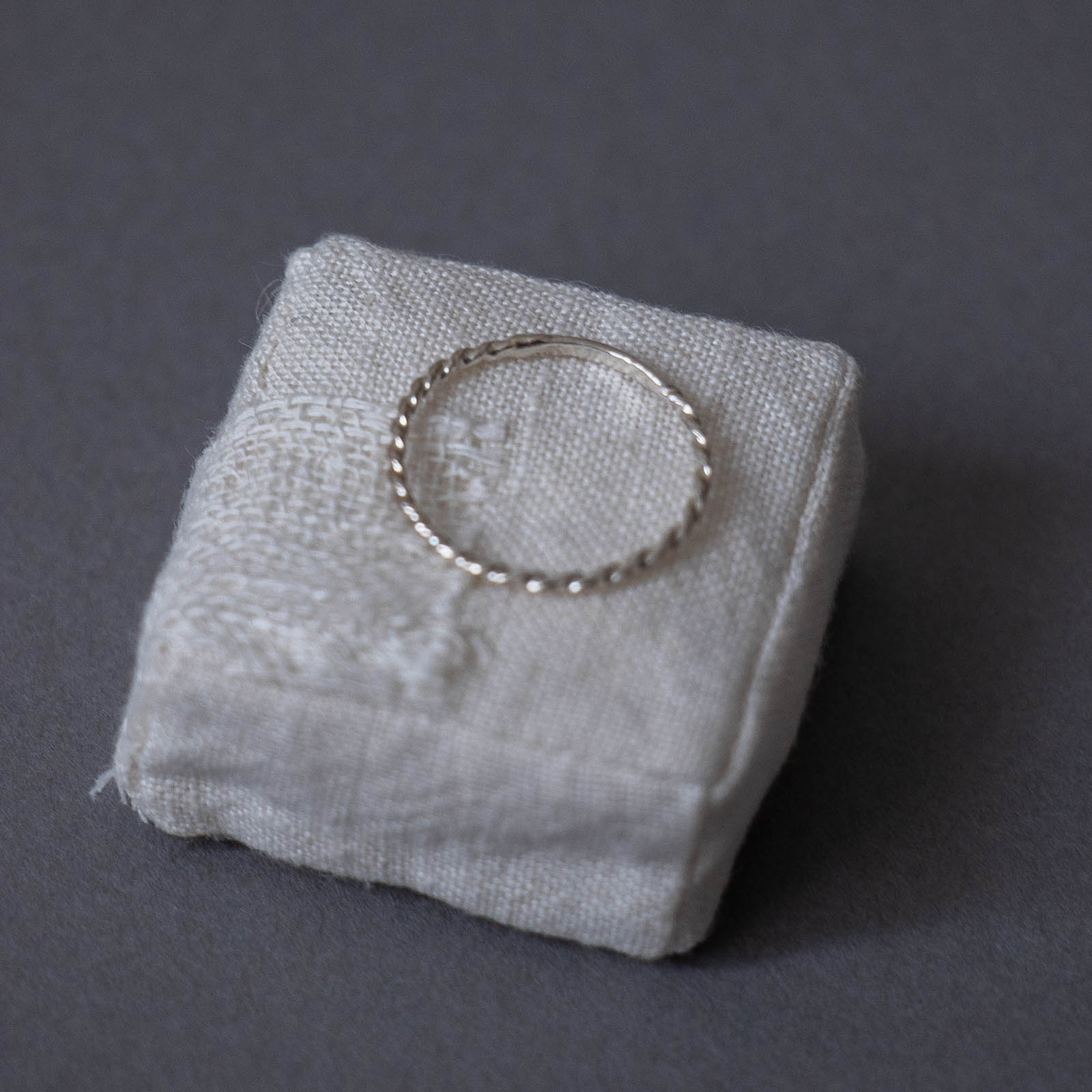 ねじりを加えながらつくられた、美しい螺旋状のリング。