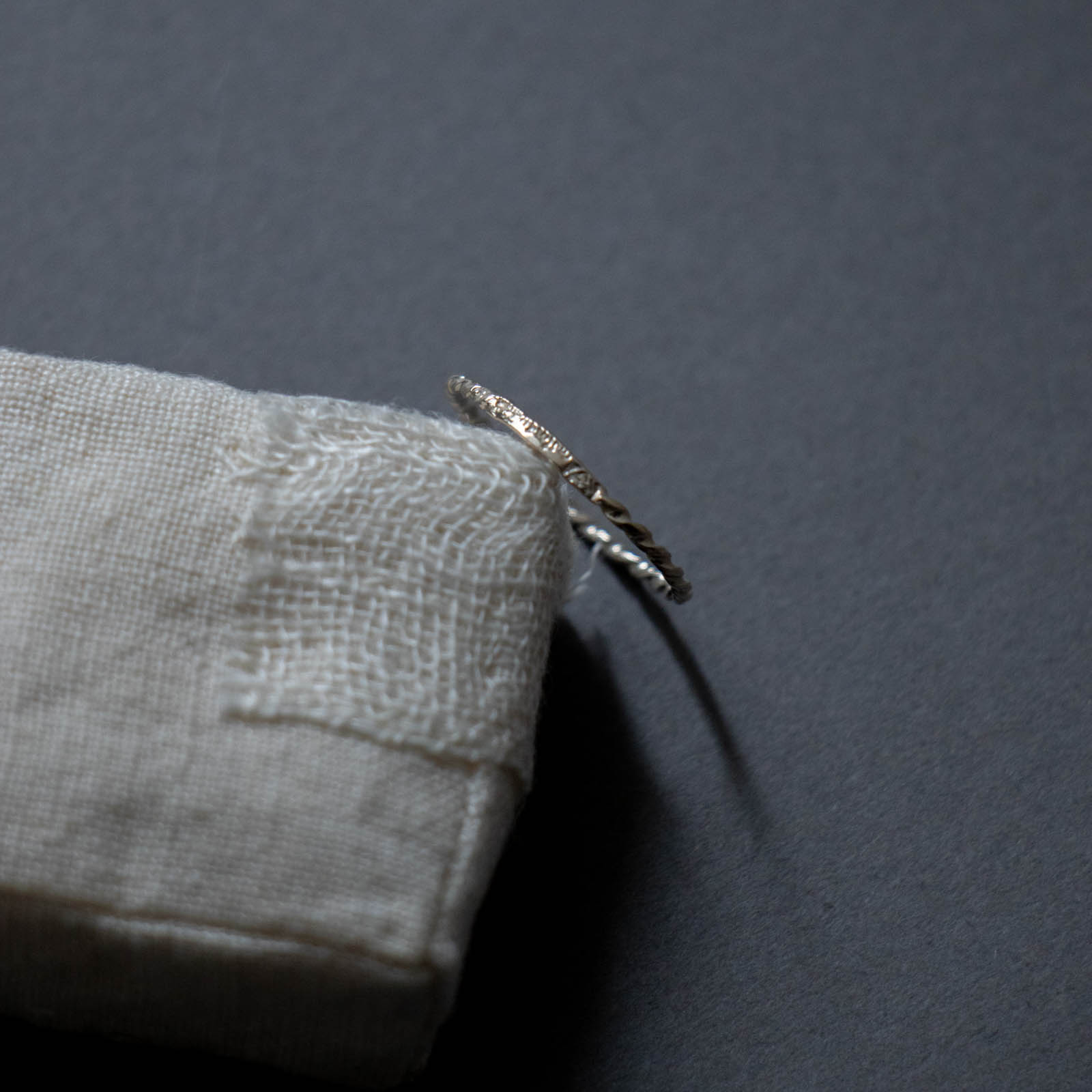 くるりと回すと、ねじりの陰影が強く見えたり、フラットな部分がアクセントになったり。身につける位置や角度によって印象が変わるため、その日の装いや気分に合わせて楽しめるのも魅力です。