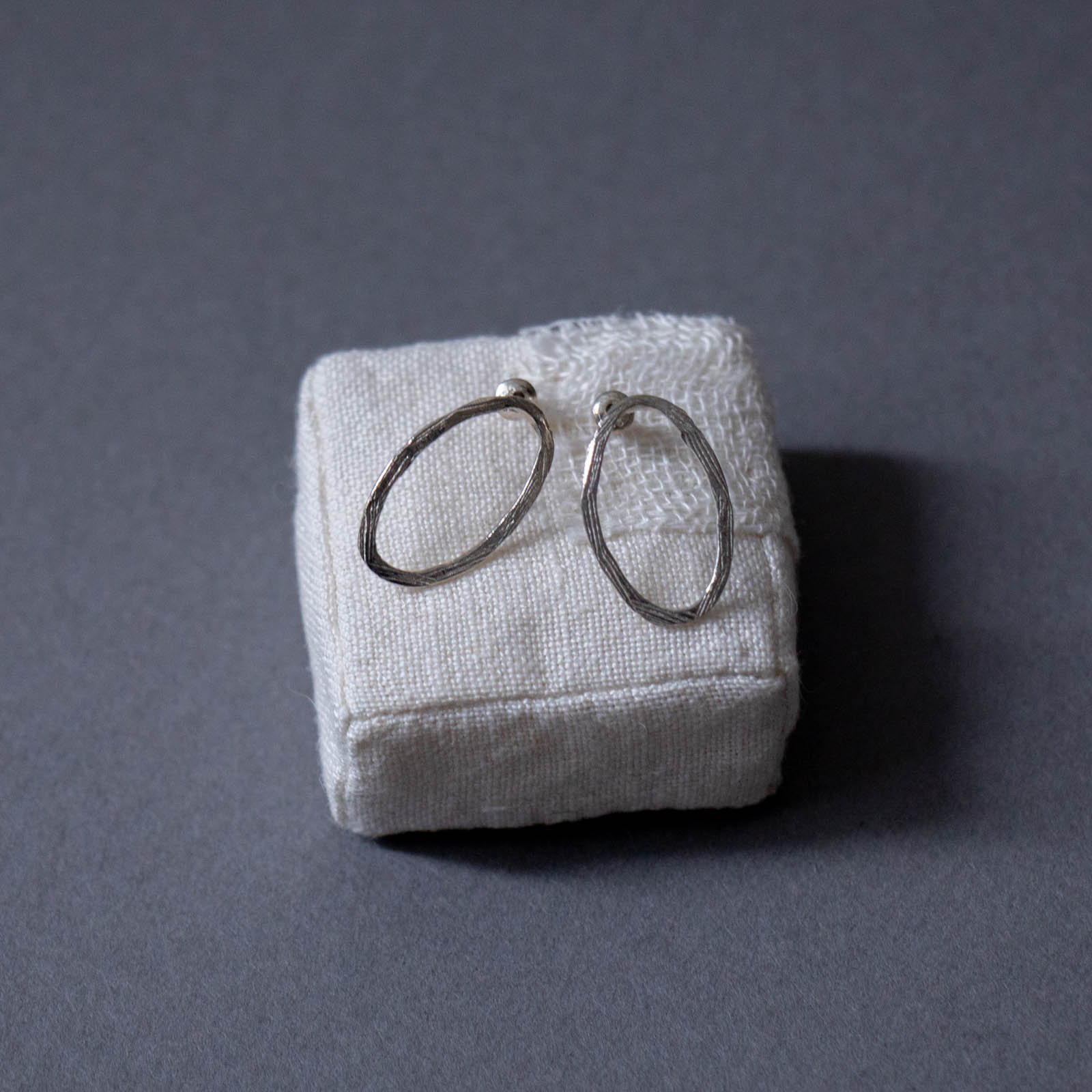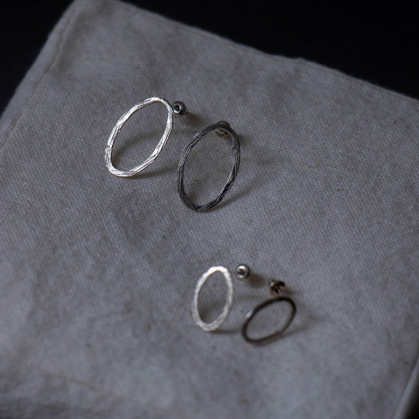 わずかに歪みをもたせた輪のフォルムには、手仕事ならではの揺らぎが宿り、凛とした佇まいを感じさせます。