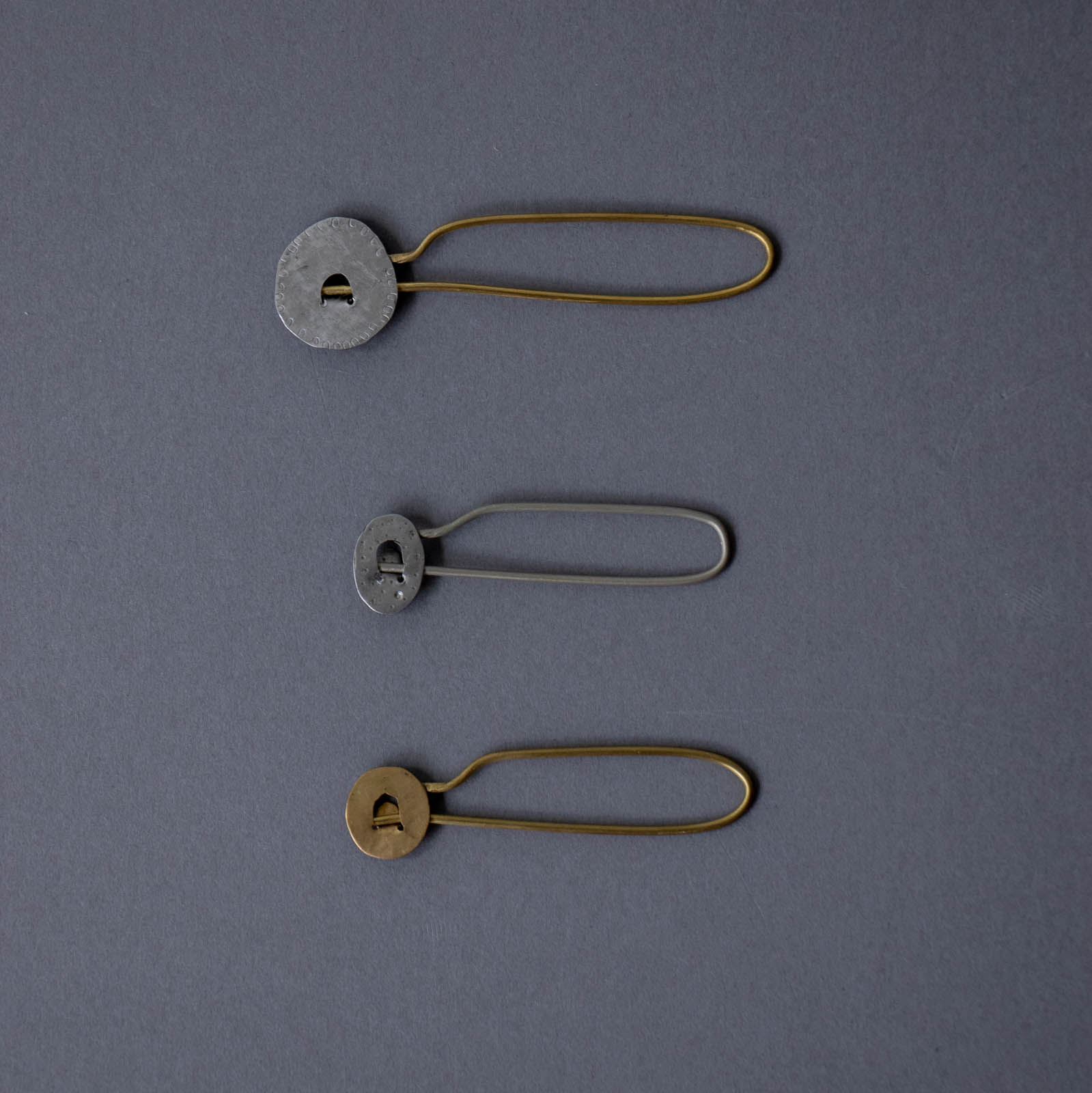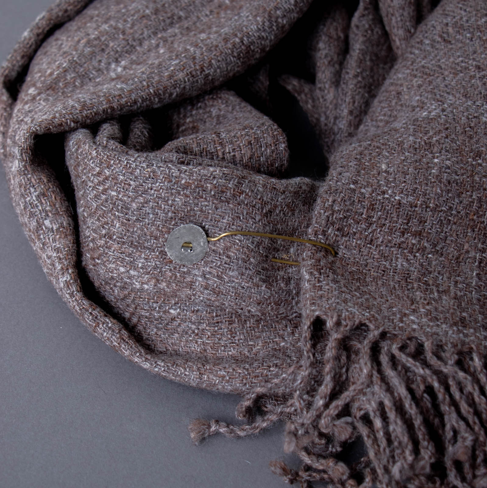 さっと刺して留めるだけで、ショールやニットに自然な動きが生まれ、装いの中にささやかなアクセントを添えてくれます。主張しすぎない佇まいなので、織りや編みの表情を邪魔することなく、全体をすっきりとまとめてくれるのも魅力です。