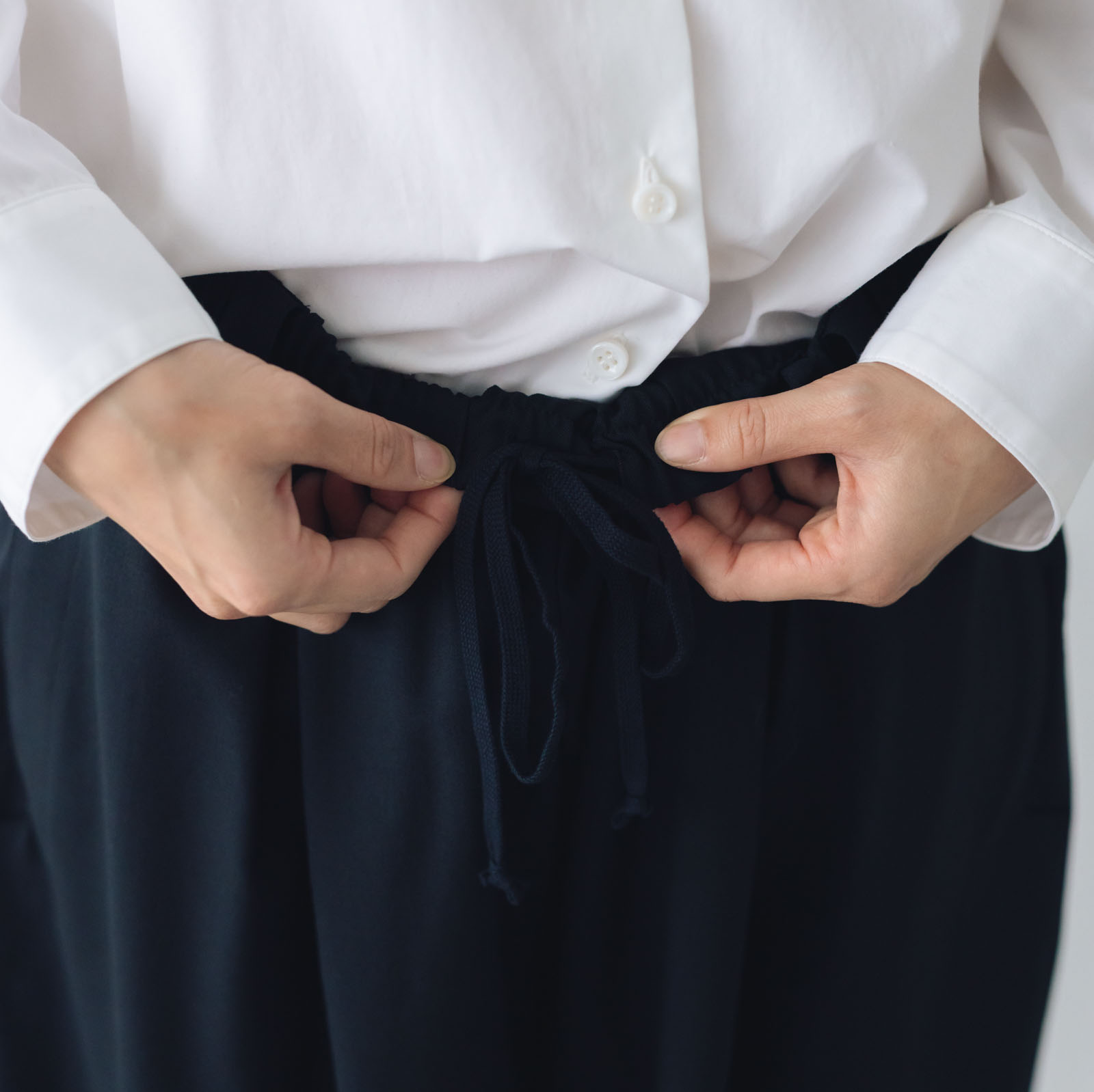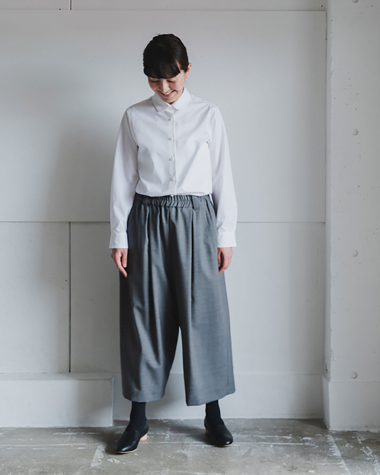 お子さまの卒入学式や冠婚葬祭はもちろん、入社式や仕事の場面など、さまざまなフォーマルシーンで頼りになる一本です。 たっぷりとしたワイドシルエットは、atelier naruse のコレクションでも長く親しまれているデザインがベース。ラインはそのままに、フォーマルシリーズとして丁寧にリデザインされています。動きやすさがありながら、美しく見えるシルエットです。