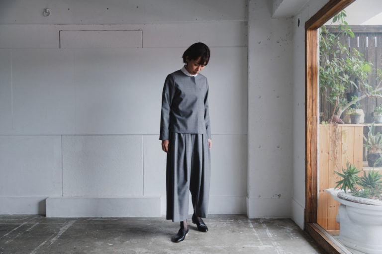 フォーマルノーカラージャケットと同素材で仕立てた、ワイドシルエットのフォーマルパンツ。合わせていただくと、きちんと感がありながらも、自然体でいられる、ほどよい洒落感のあるセットアップになります。