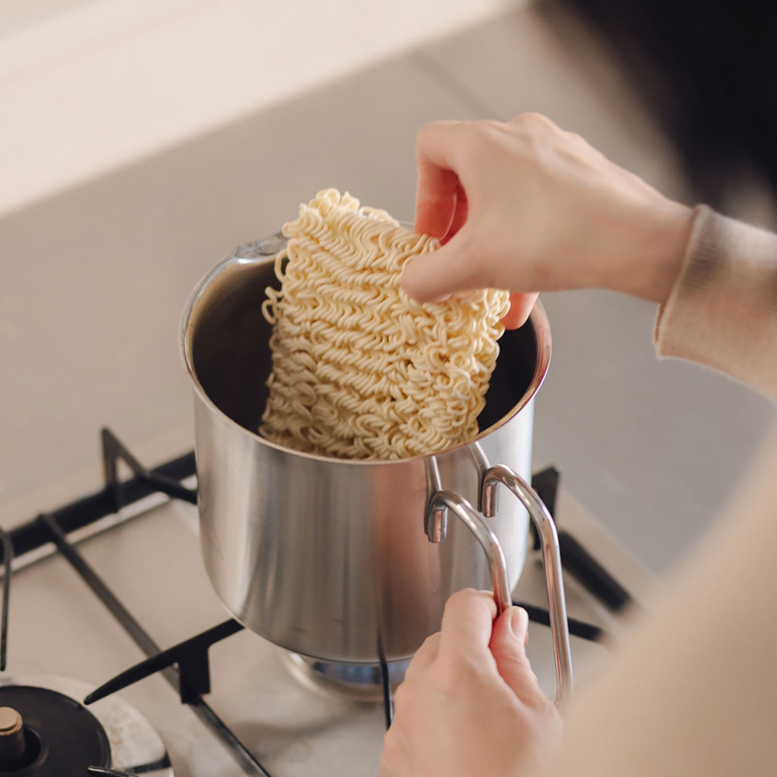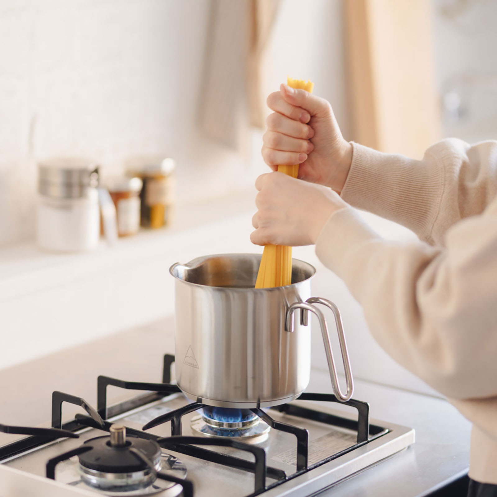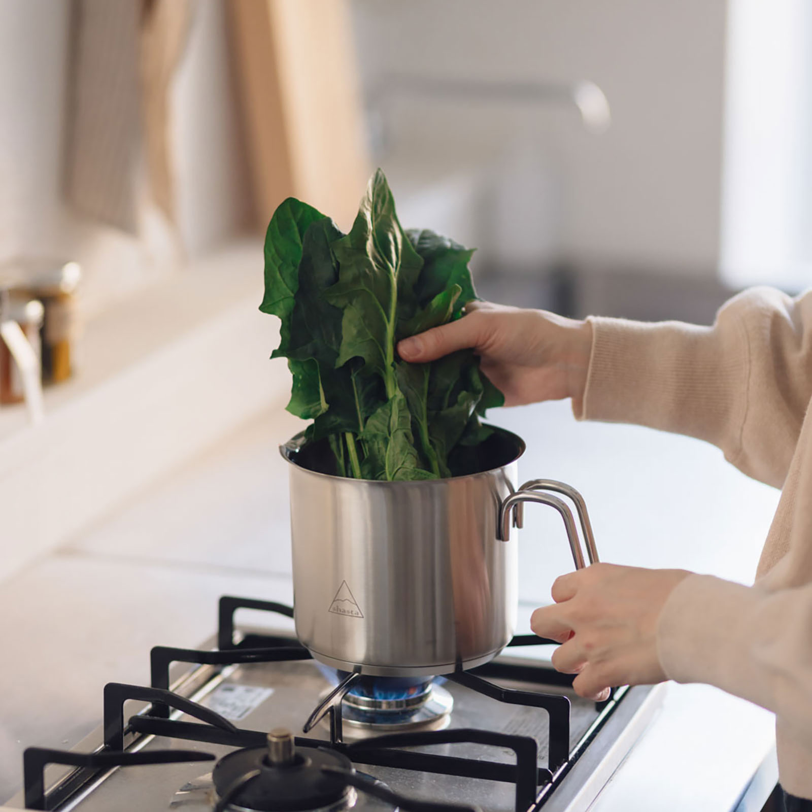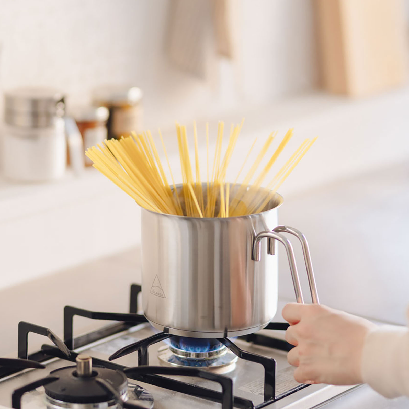 茹でる、炒める、煮る、揚げる、沸かす、炊くなどのさまざまな調理法に対応しているマルチなお鍋。青菜を茹でる、ラーメンやパスタなどの麺類を茹でる、煮物や炊飯、お味噌汁づくりなどで毎日活躍します。