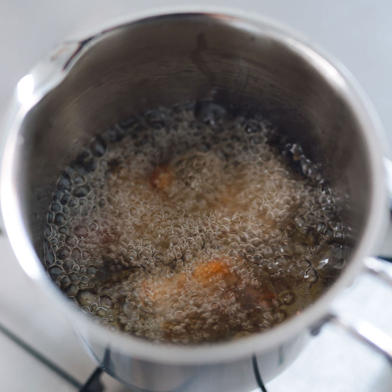 15cmのお鍋でから揚げを。高さがあるため、油が飛び散りにくいのがうれしい。