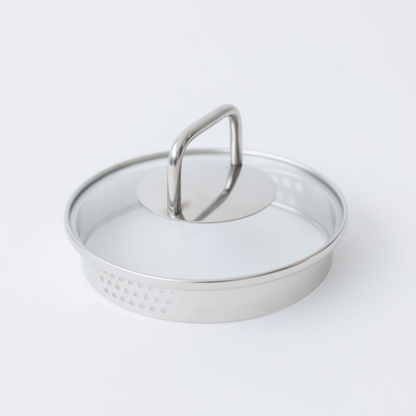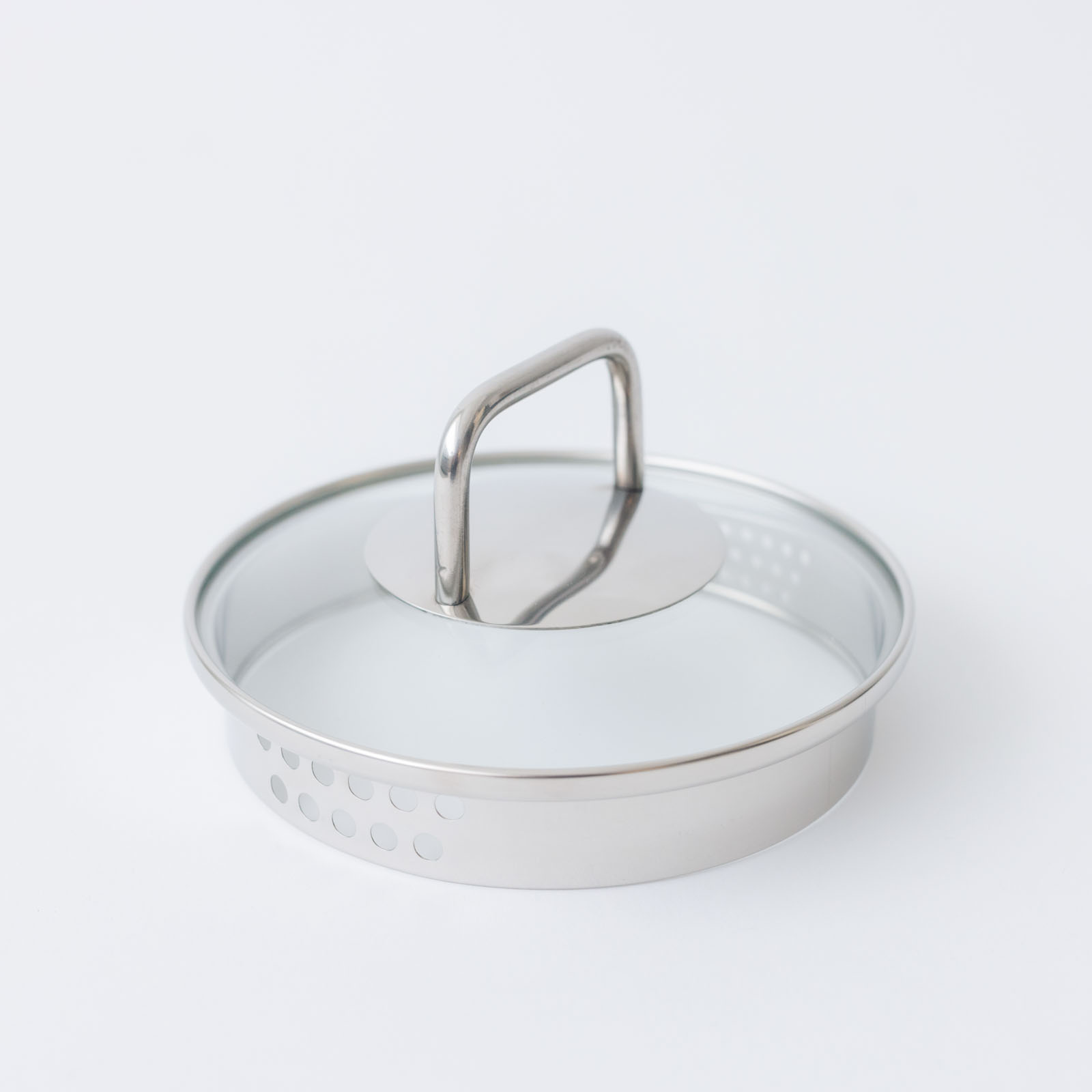 ガラス蓋は、煮物や炊飯の調理中にお鍋の中の様子を確認することができます。ガラス蓋の両サイドに湯切り穴がサイズ違いで配置されていて、食材によって大小を使い分けられる、という気の利き具合!