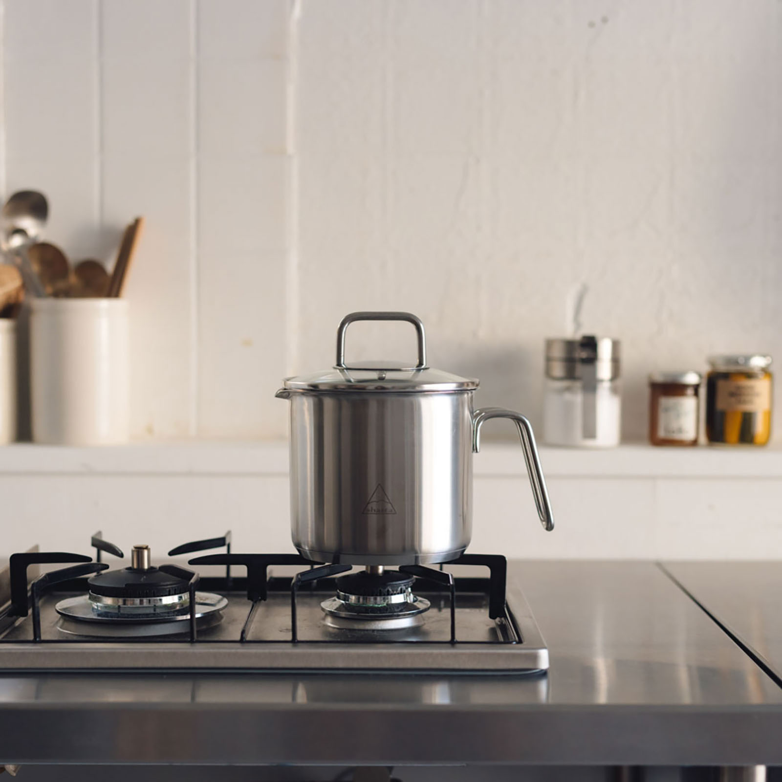 この1台で「茹でる」「炒める」「煮る」「揚げる」などさまざまな調理に対応する、コンパクトなステンレス製のお鍋。