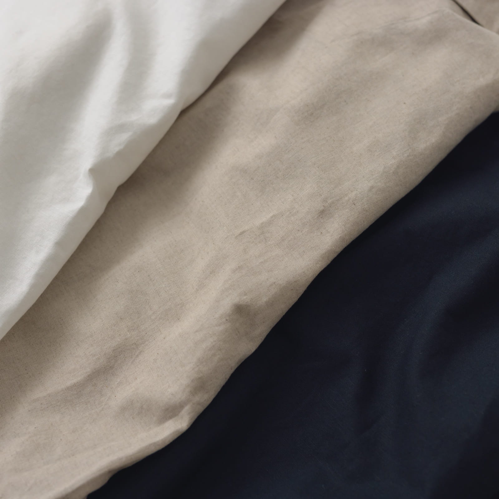 清潔感のあるオフホワイト、大人っぽくもほっこりにも見せられるナチュラル、きれいめにもカジュアルにもなるブラックの3色をご用意。
