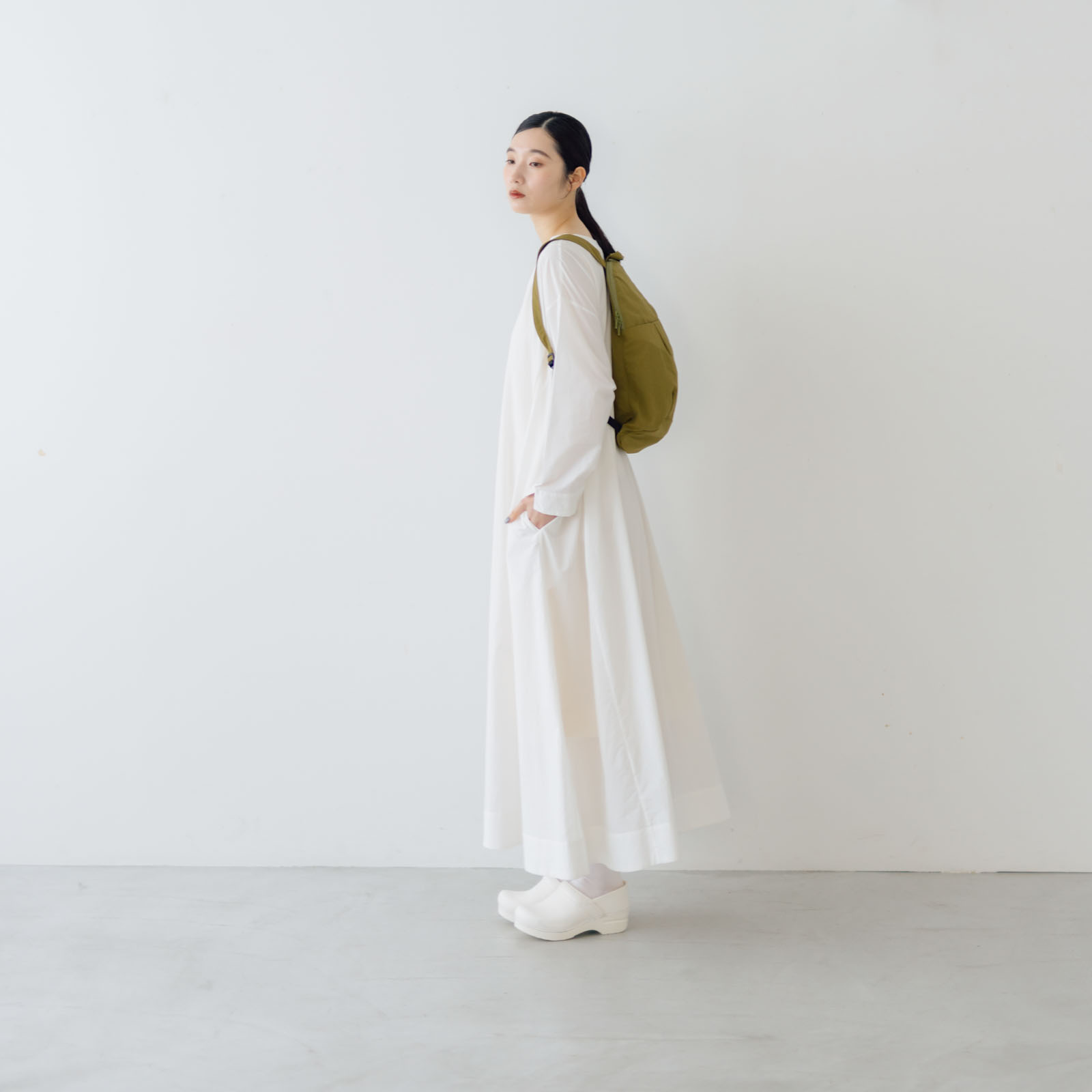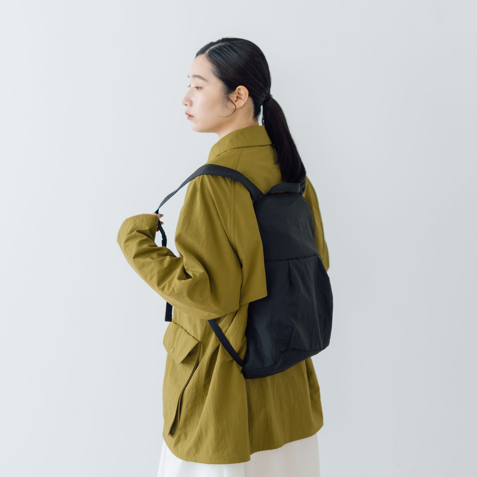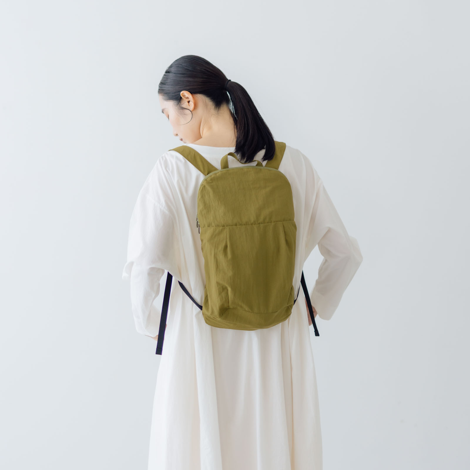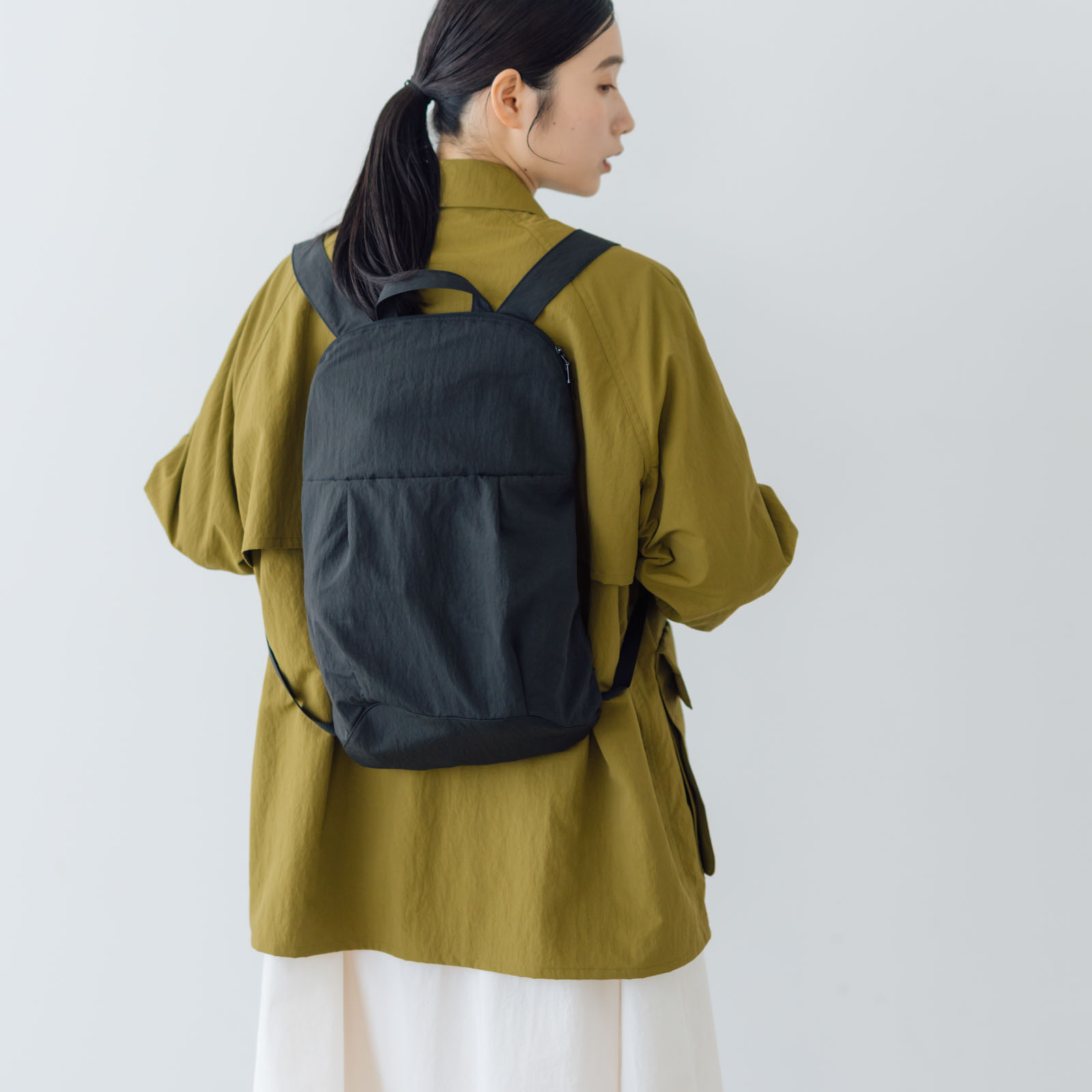 背面のパッドもなく、厚みのないシンプルな形なので重たいものは運べないけど、その分肩のストラップも細くお洋服のデザインを邪魔しないミニマムな雰囲気のバッグに仕上がっています。