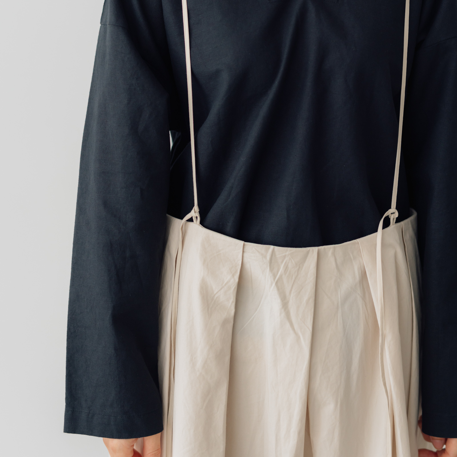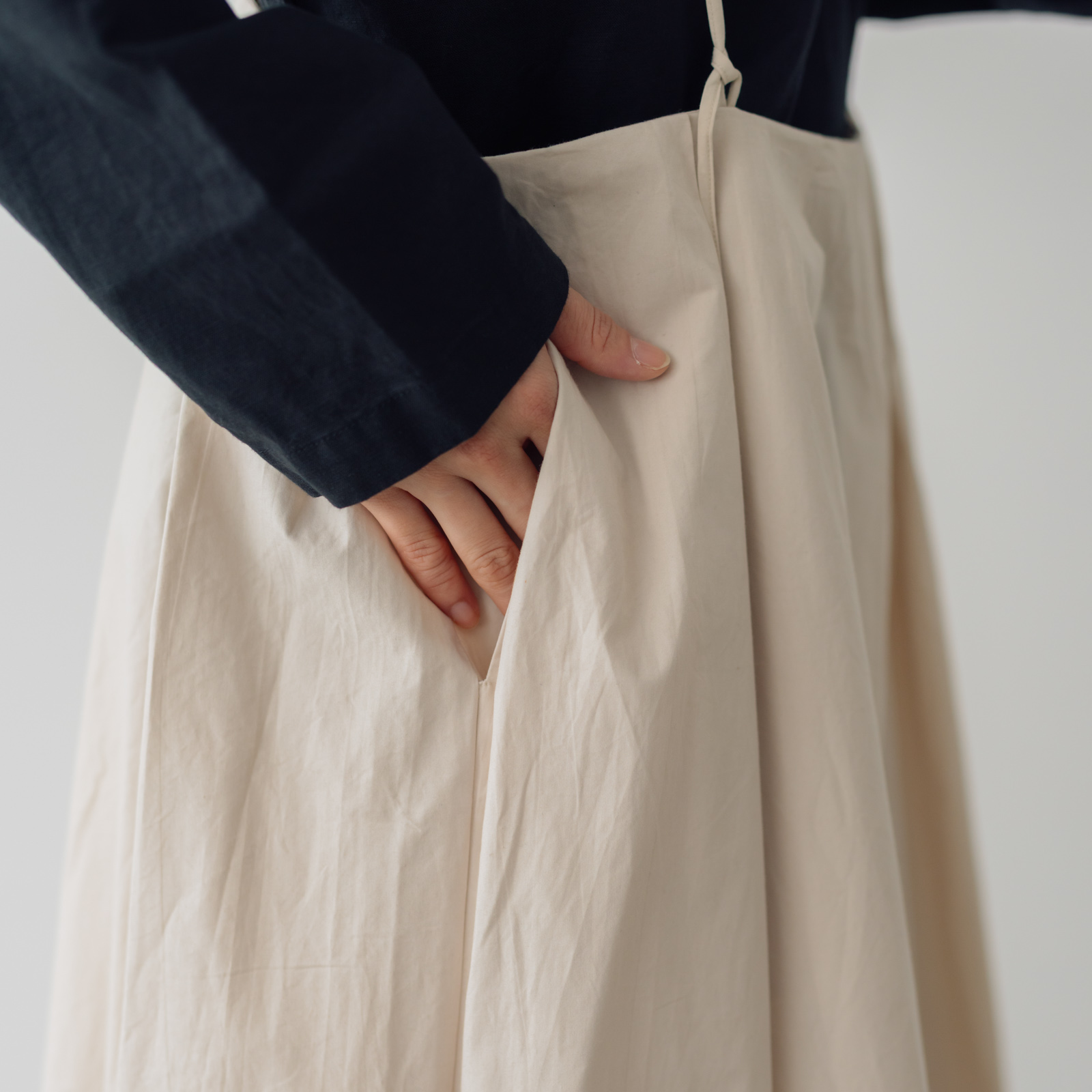素材はハリのあるコットンなので、履いた時にシルエットが立体的になり、大人らしい印象をつくります。