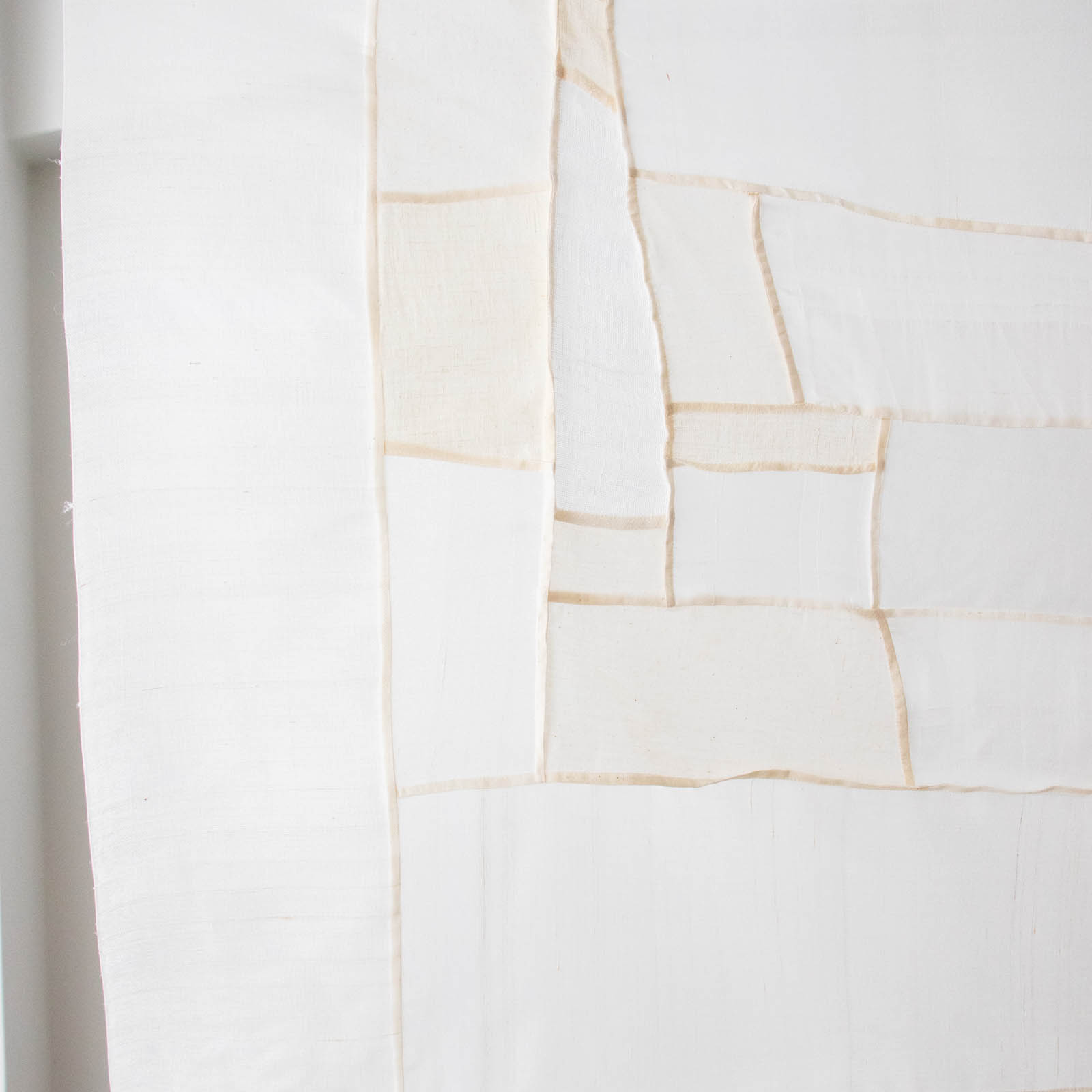 リネン、シルク、モスリン、オクサ。質感も透け感も異なる布が、ゆるやかに重なり合う一枚です。