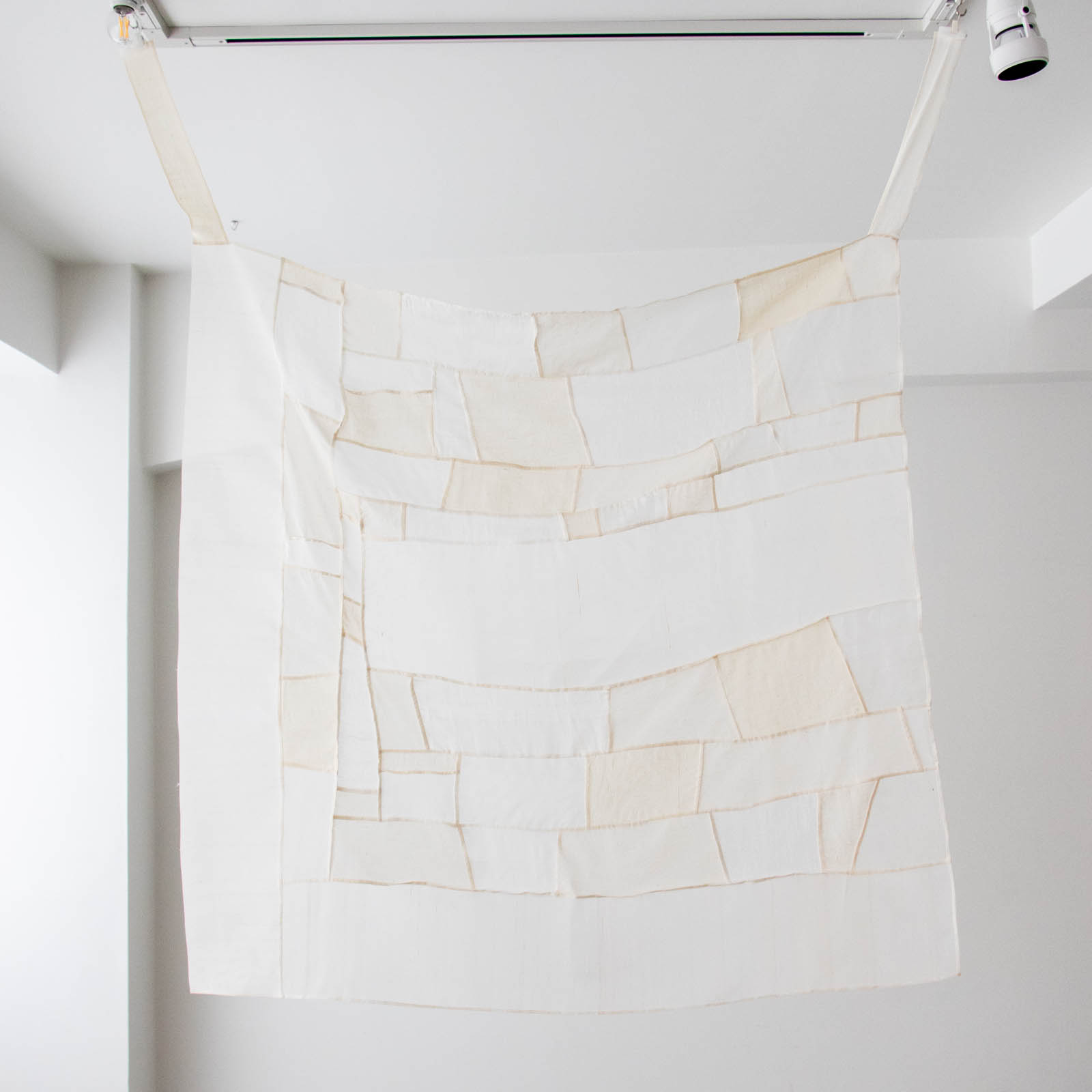 素材が持つさまざまな表情を大切にしながら、自身の感覚に導かれるままに布を組み合わせていきます。同じものがひとつとしてない作品は、静かな佇まいのなかに豊かな空気を宿します。