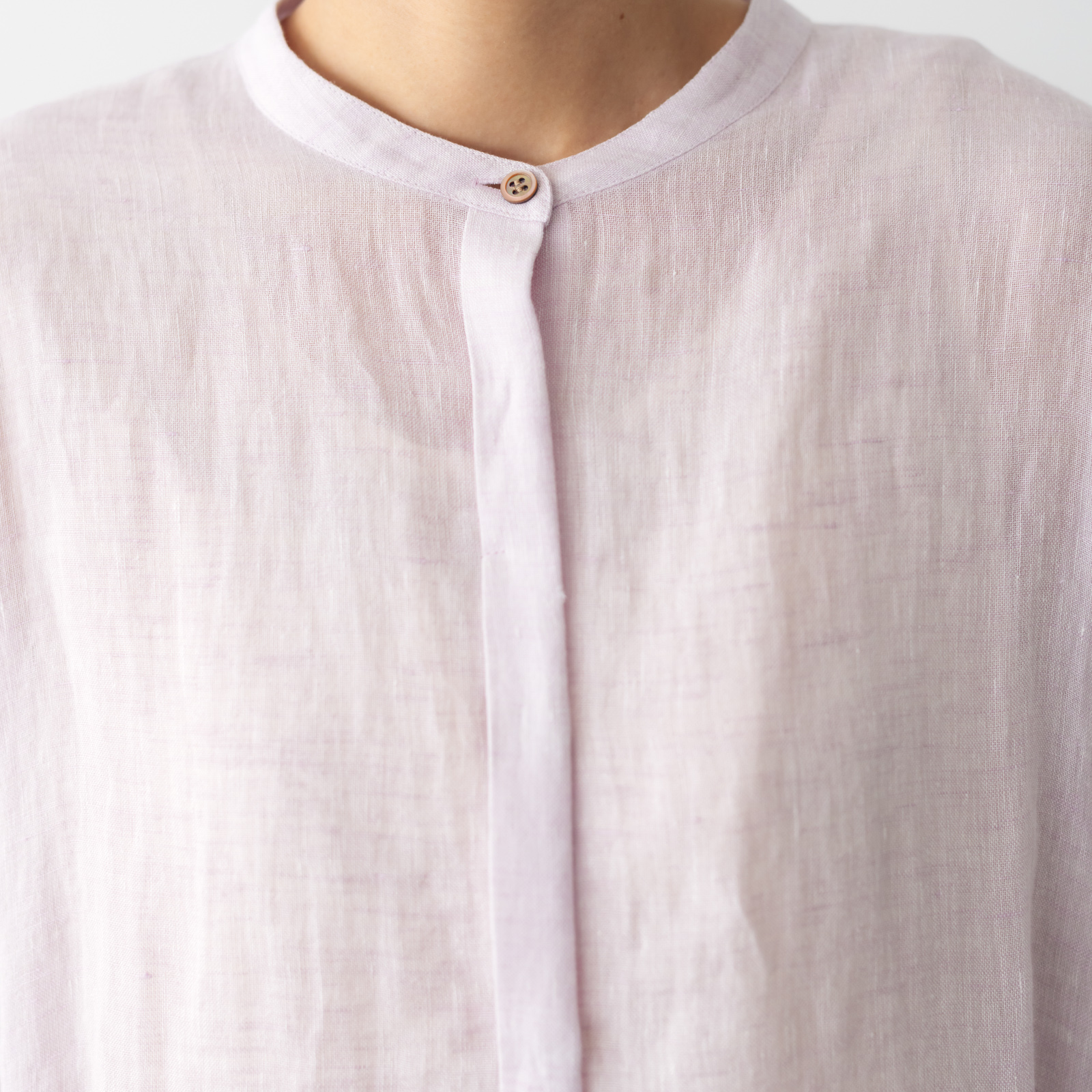 淡い「ラベンダーピンク」にはフランスノルマンディ産のフラックスを使用、「ブラック」は高密度で光沢感のあるきれいなリネンを使用するなど、色によっても違う生地を採用したり、仕上げには1着1着水洗いと自然乾燥をさせるというこだわりも。