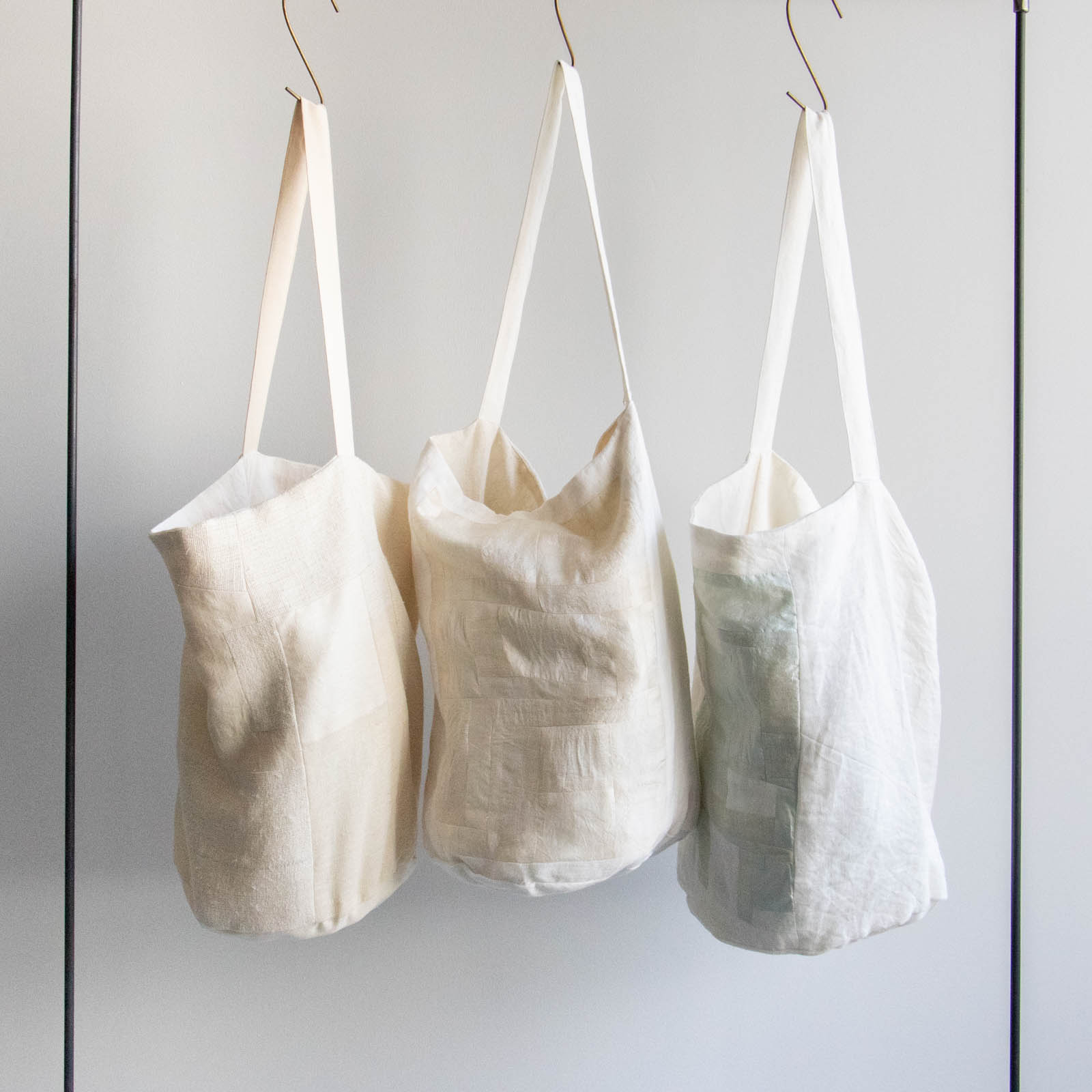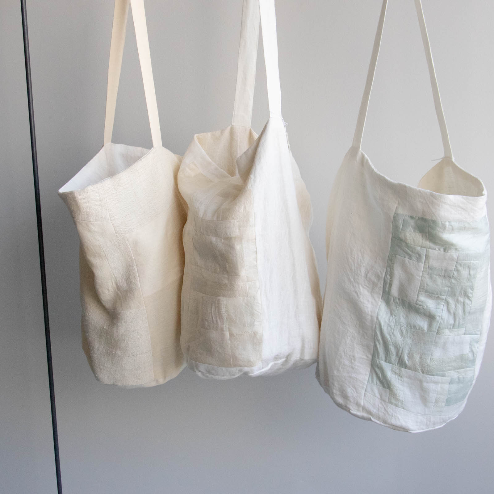 同じ形状でも、パッチワークの構成によってそれぞれ異なる印象に仕上がっています。