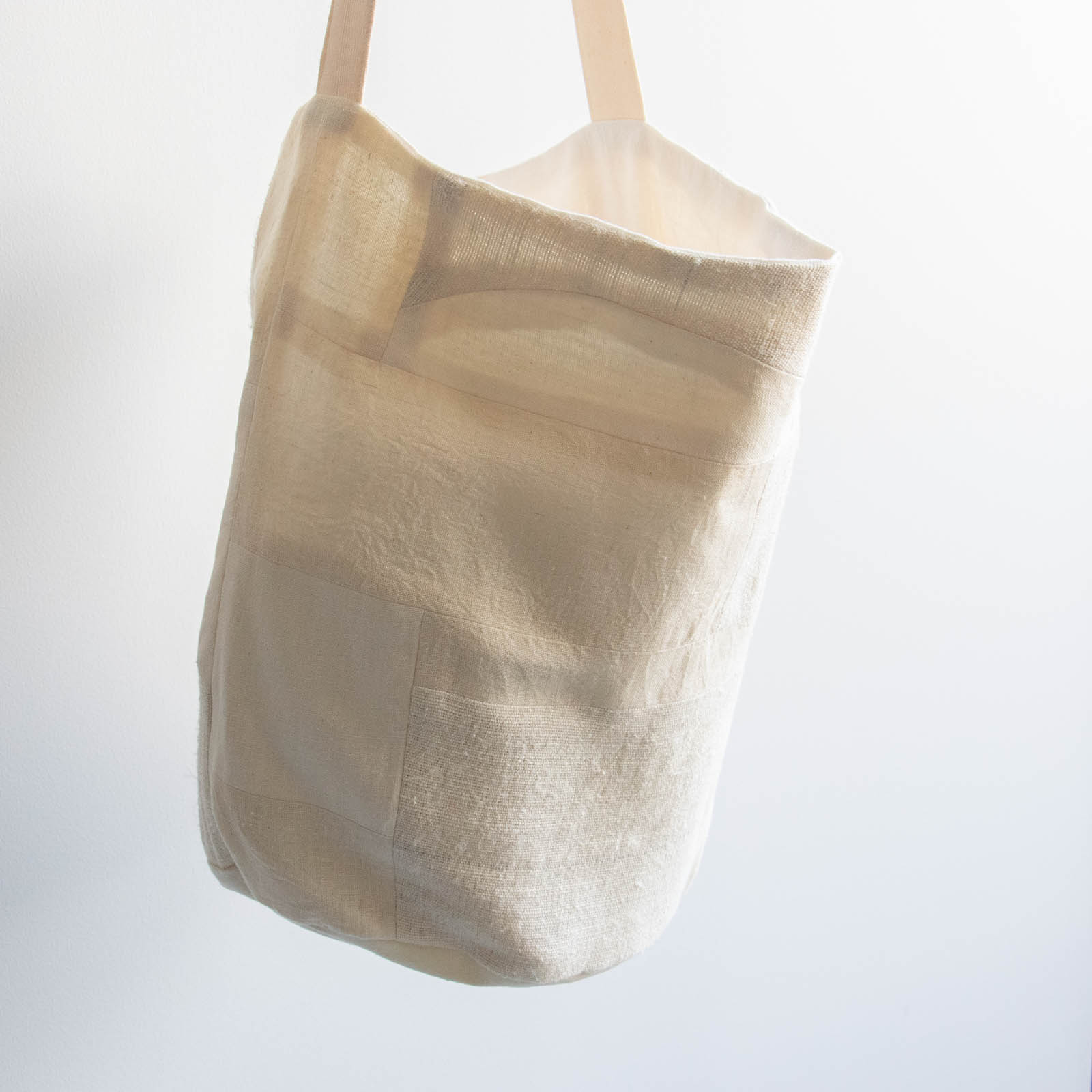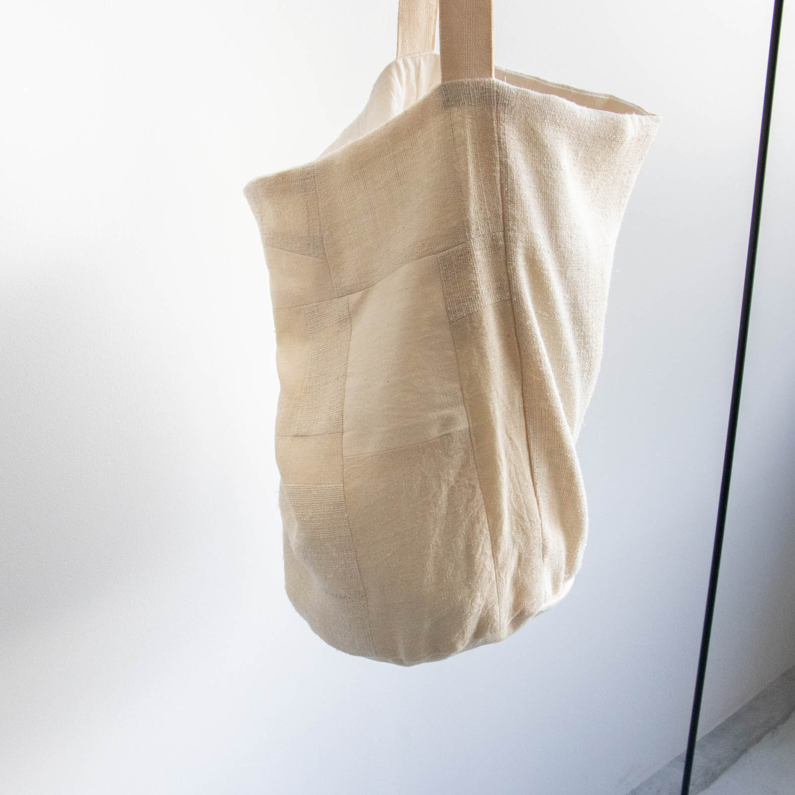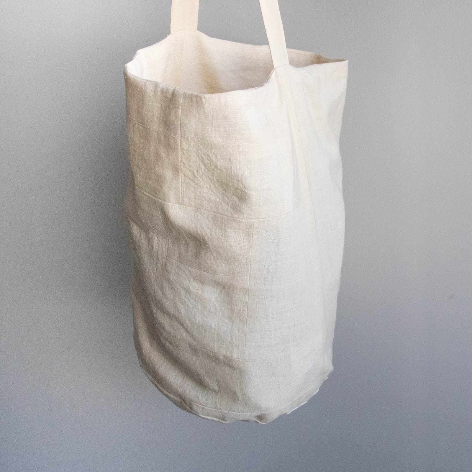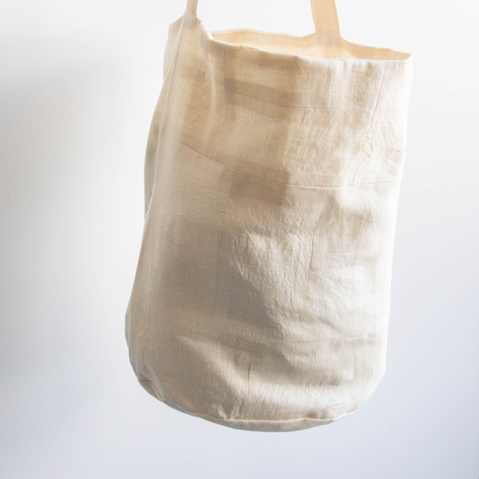 底にしっかりとマチがあり、布のやわらかな質感を生かしながら、立体的なフォルムで持てるデザインです。