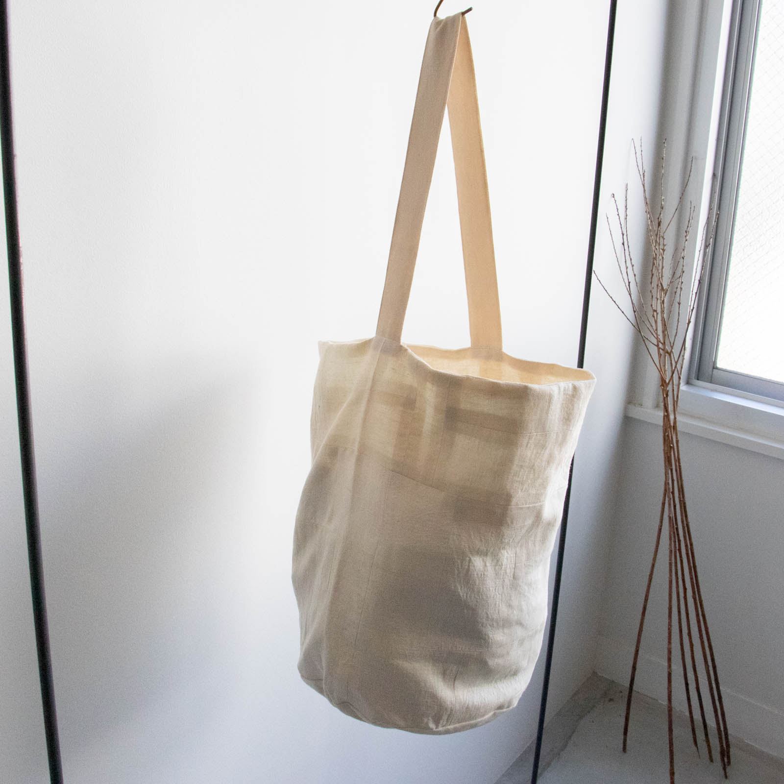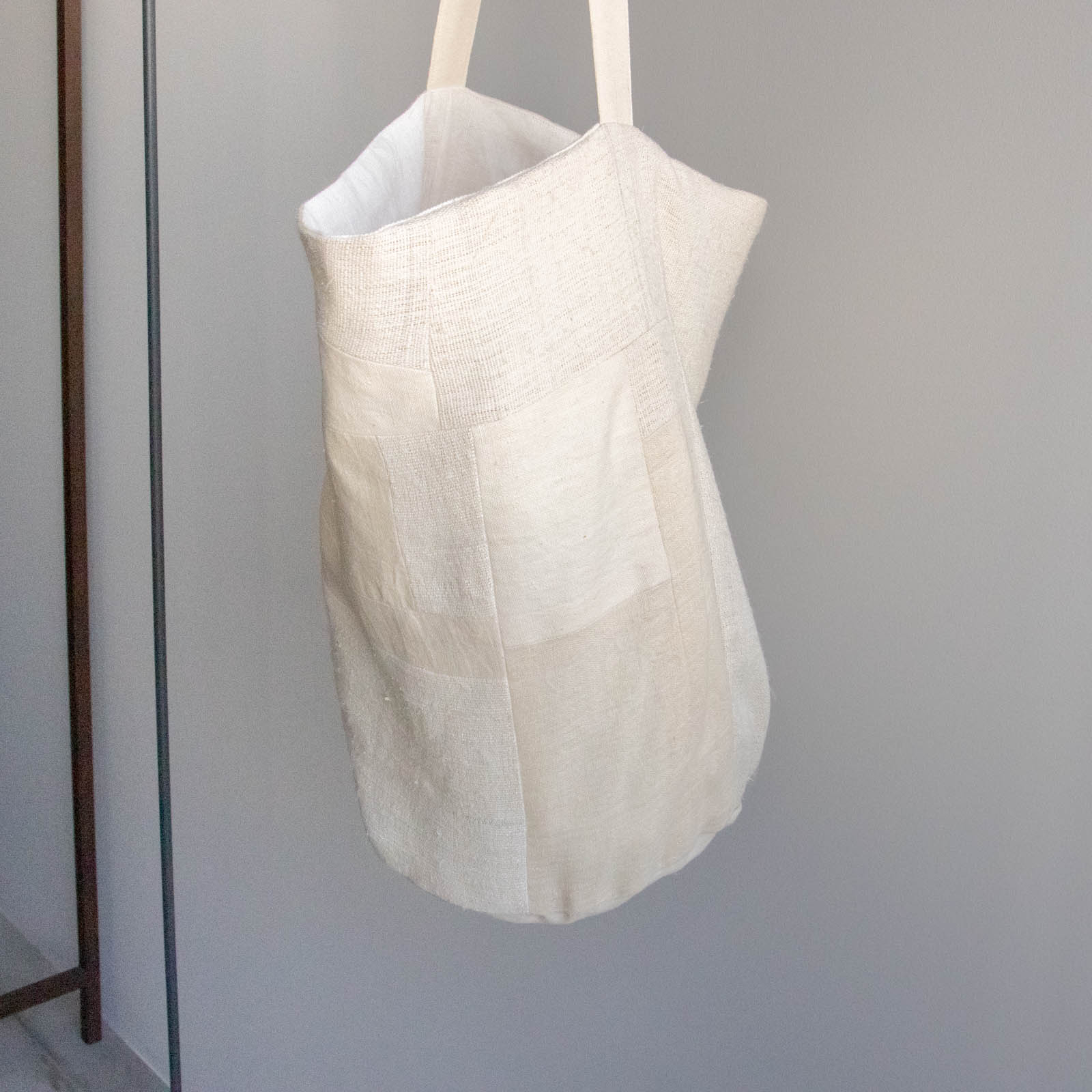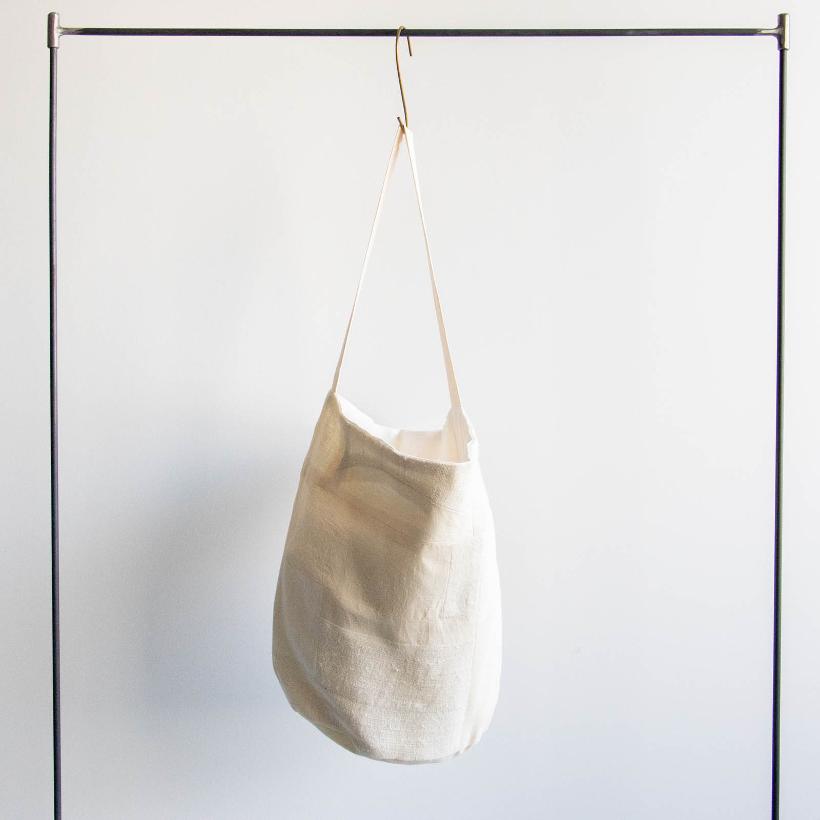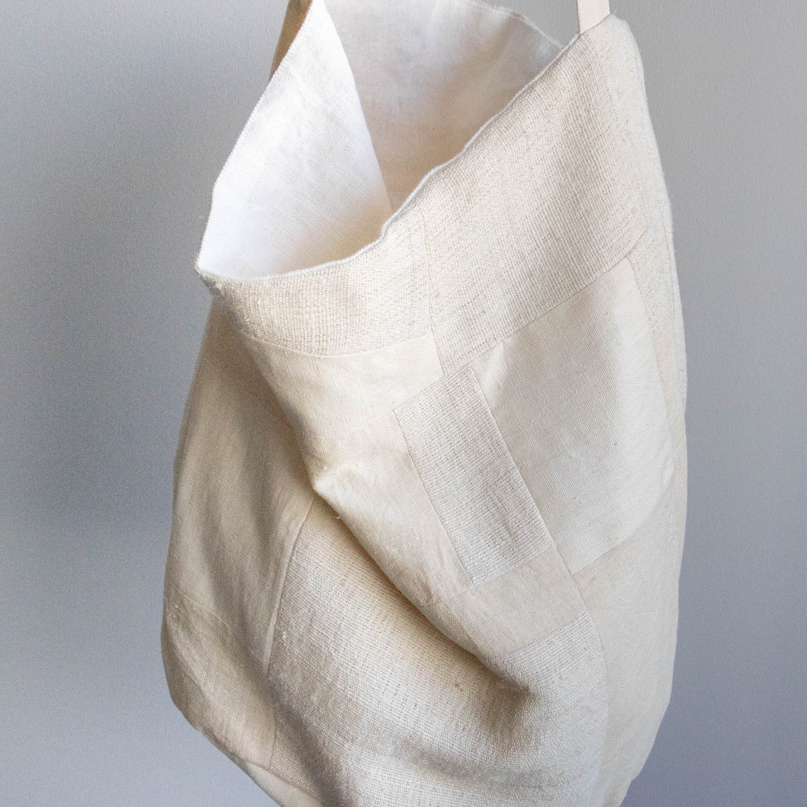底にしっかりとマチがあり、布のやわらかな質感を生かしながら、立体的なフォルムで持てるデザインです。