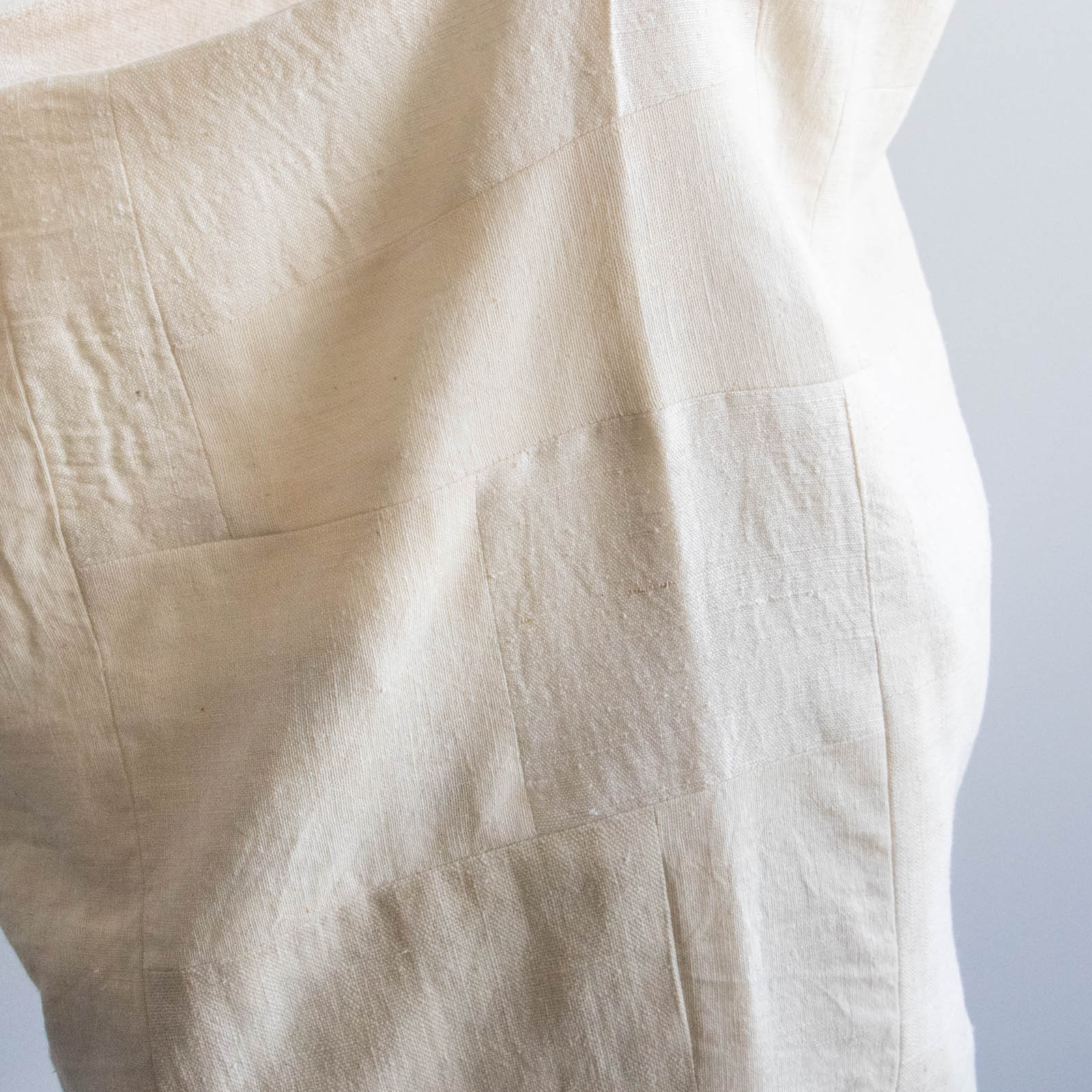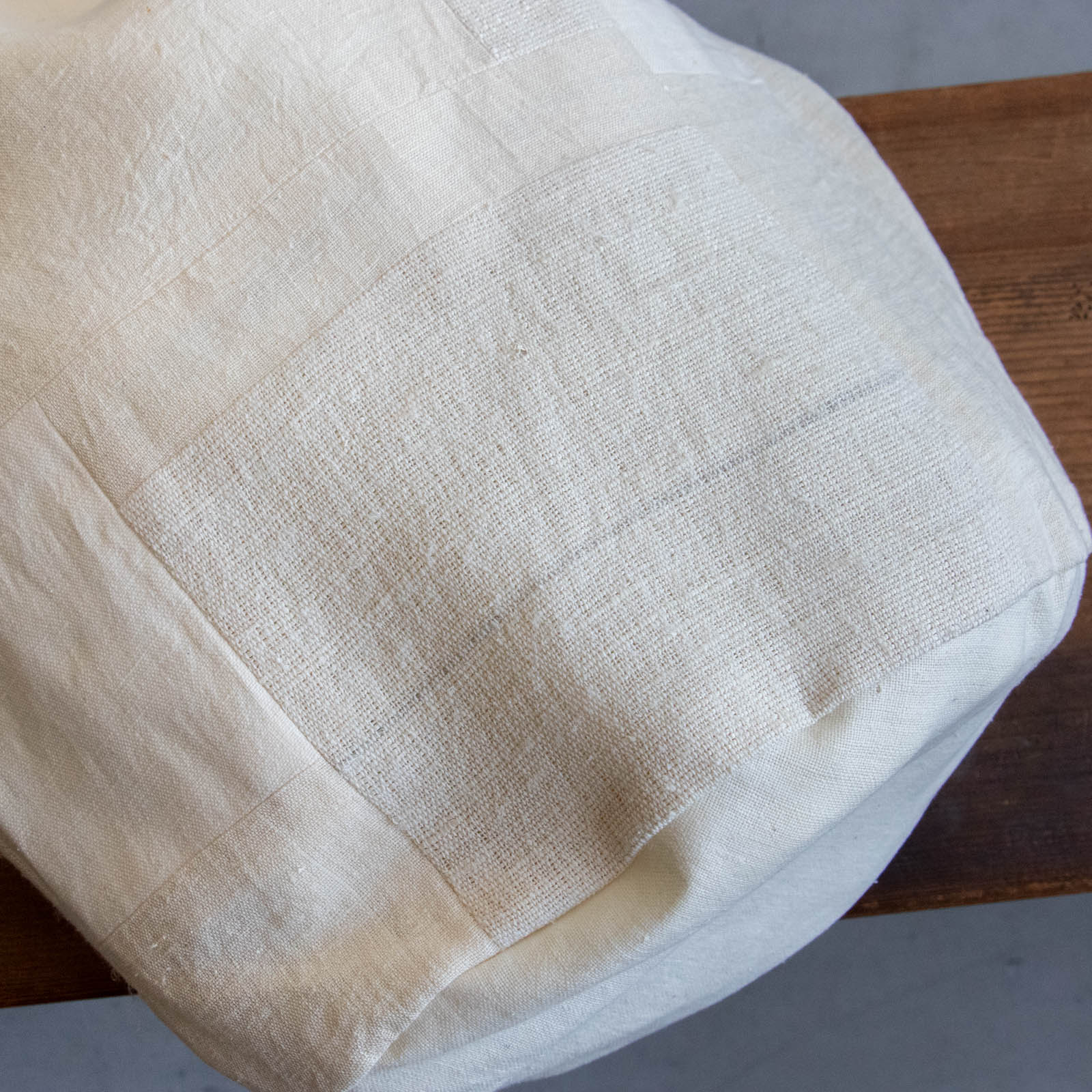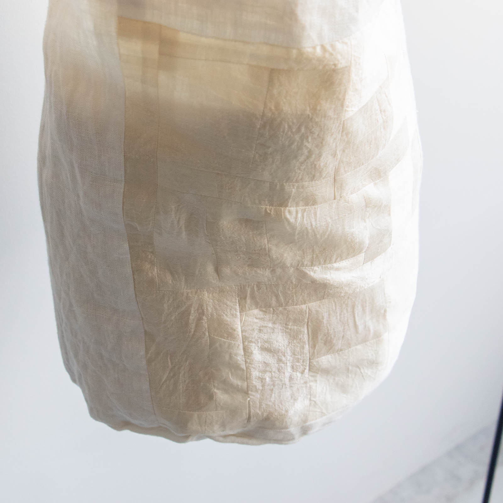 シルクとリネン、それぞれの風合いの違いが重なり、布の表情に奥行きを生み出しています。