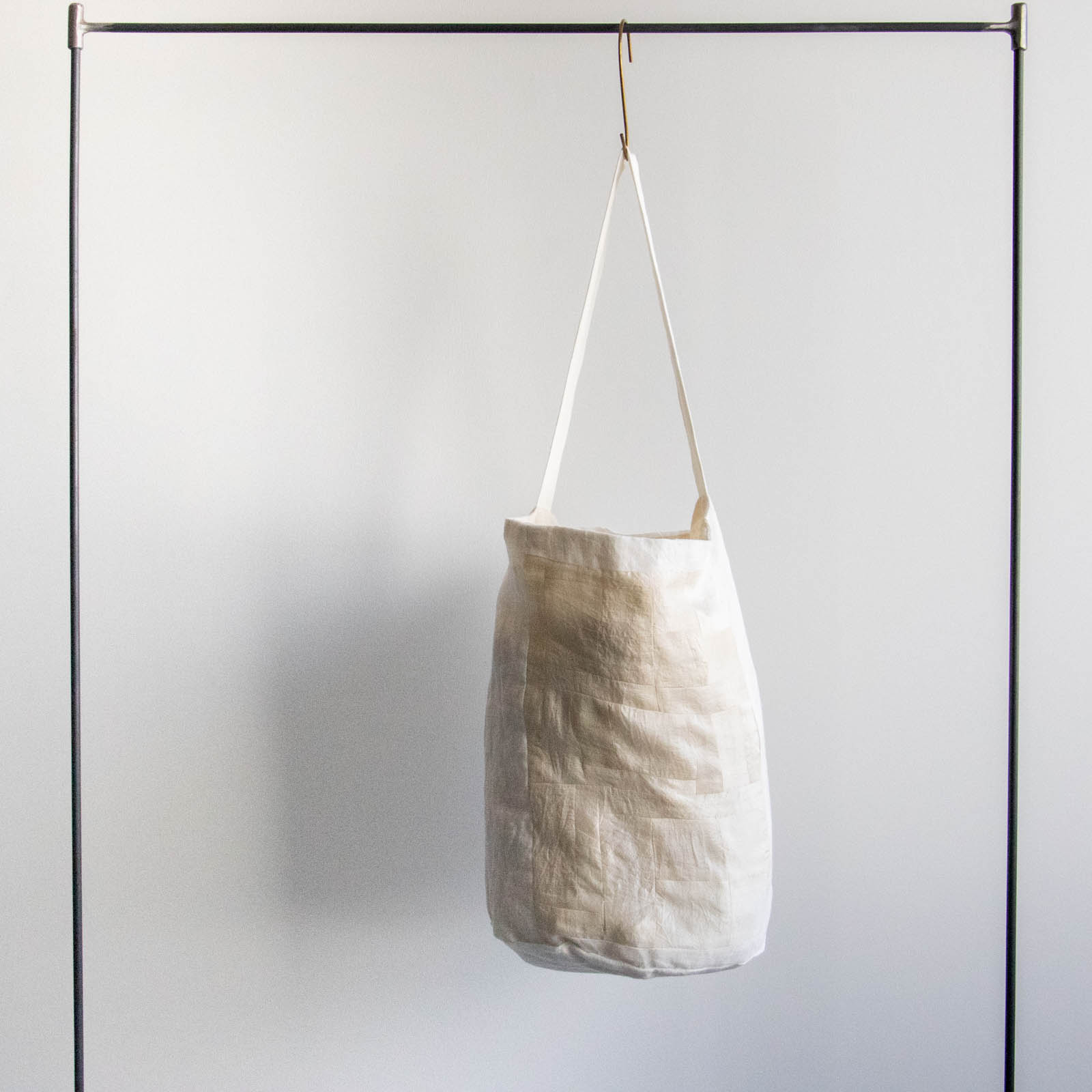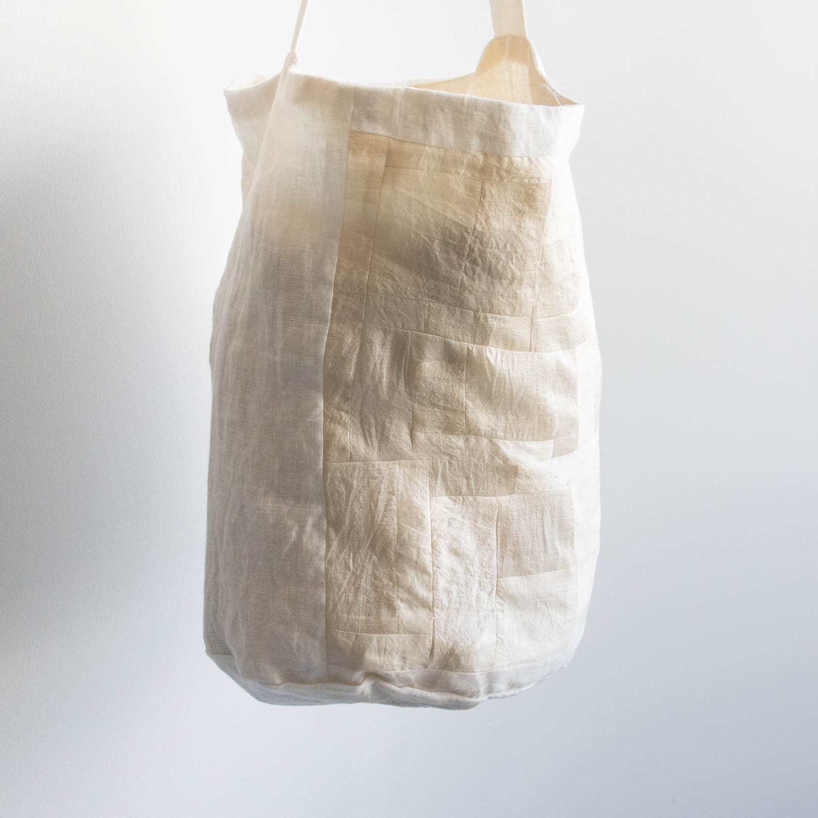 同系色の中で素材のニュアンスが重なり、穏やかな布の景色を感じられるバッグです。