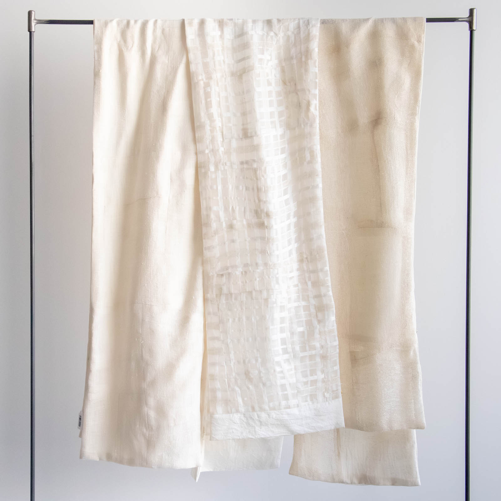 ほつれや織りむら、違う色の糸が混ざっているものも素材ならではの特徴としてとらえ仕立てられ、絲室作品のひとつの風合いとなっています。ご理解の上ご購入くださいますようお願いします。