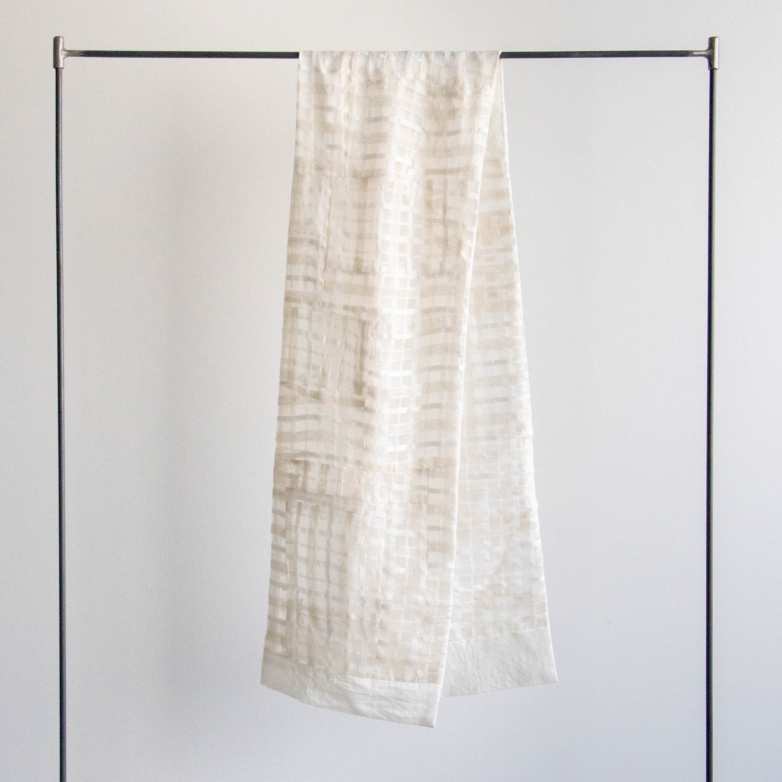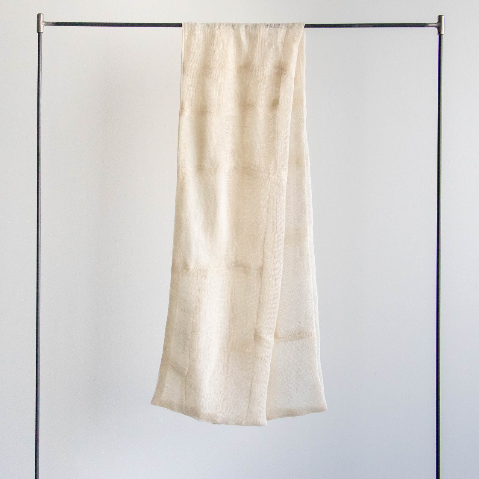 表情のあるチェック柄が特徴的な、シルクとリネンを組み合わせたストール。