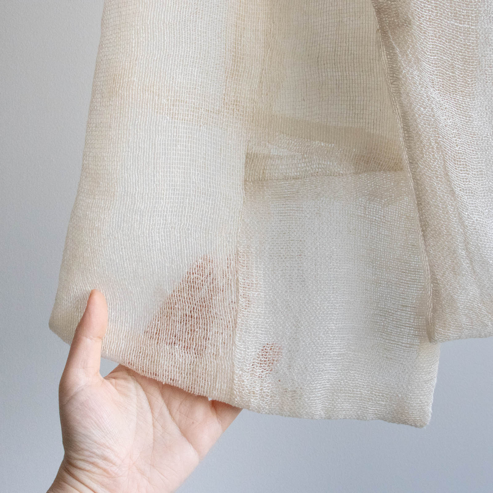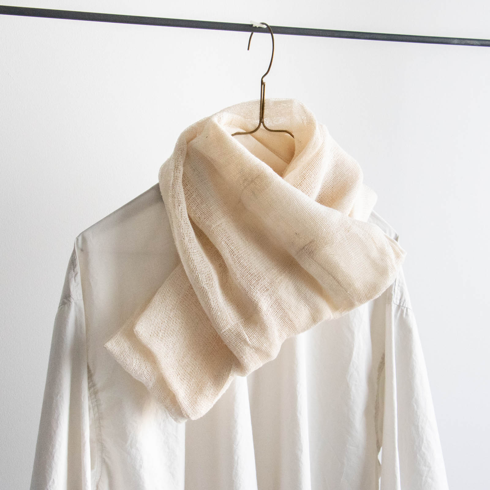 しっとりとしたやわらかさで、巻いたときの収まりもよく、ほどよい透け感と、やさしくにじむような色合いが魅力です。