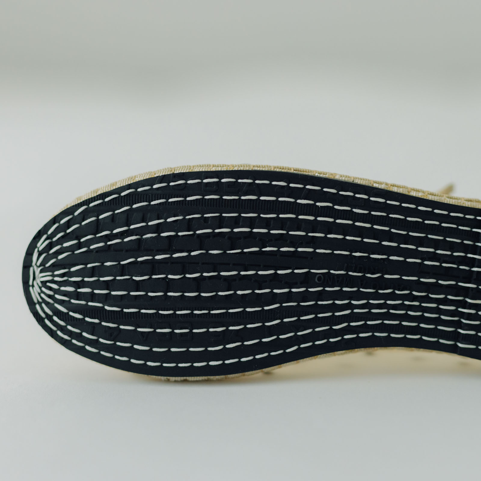 ・歩き方や癖によってアウトソールの糸が切れる場合もございますが、数か所切れてもソールが外れてしまうことはありませんのでご安心ください。(切れた糸は気になる場合はカットしてください。)