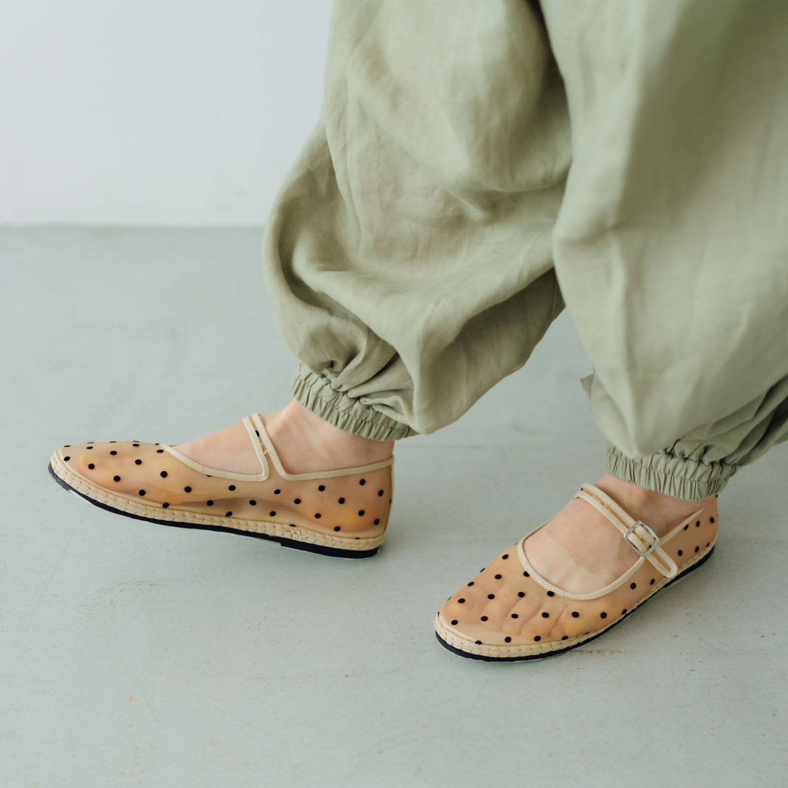 抜け感を添える、ドットのメッシュシューズ