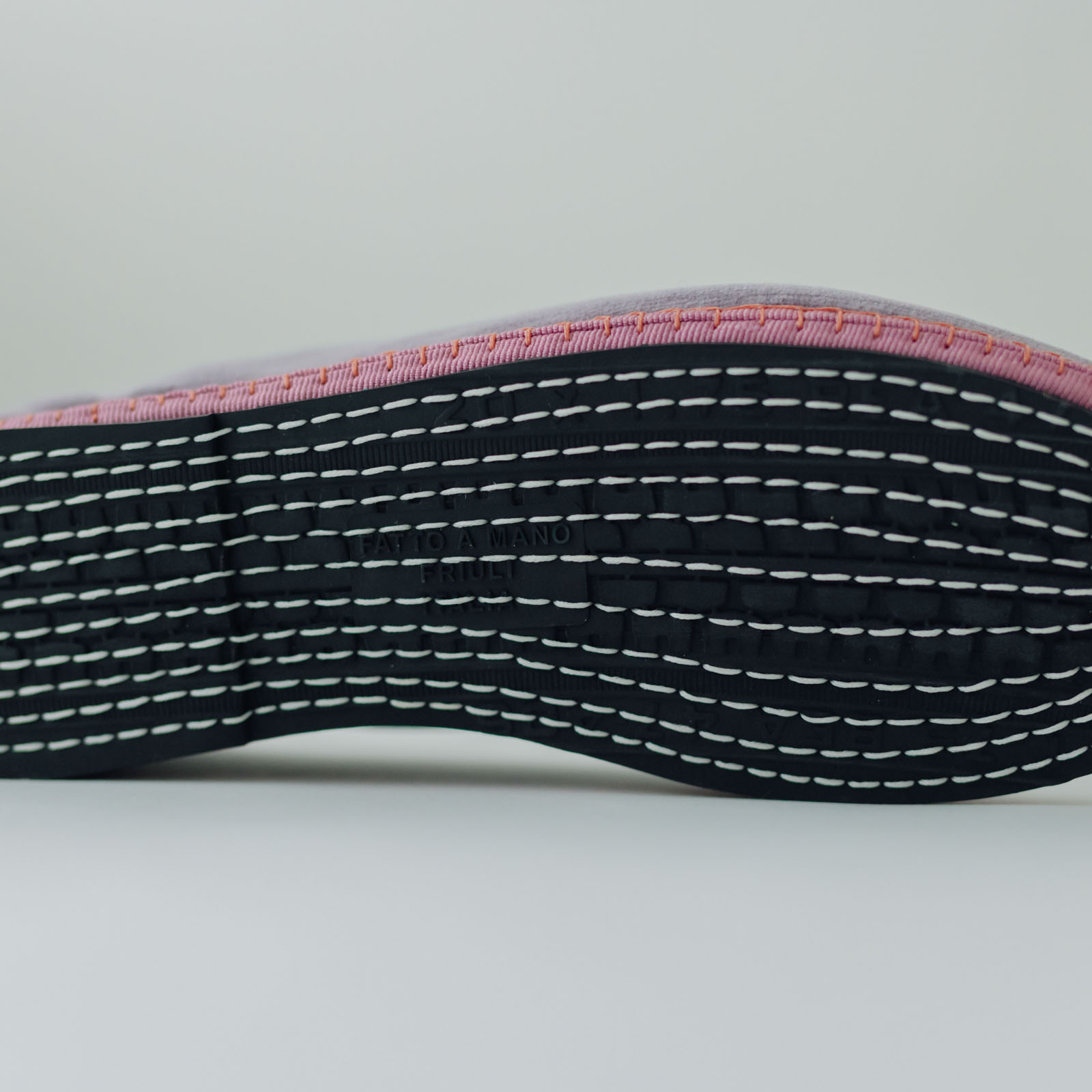 靴作りの過程で環境に負荷がかからないように、接着剤は使わず、職人の手によって糸で頑丈に縫い付ける製法で作られています。この作り方によってアウトソールにできる細かなステッチの跡が特徴。