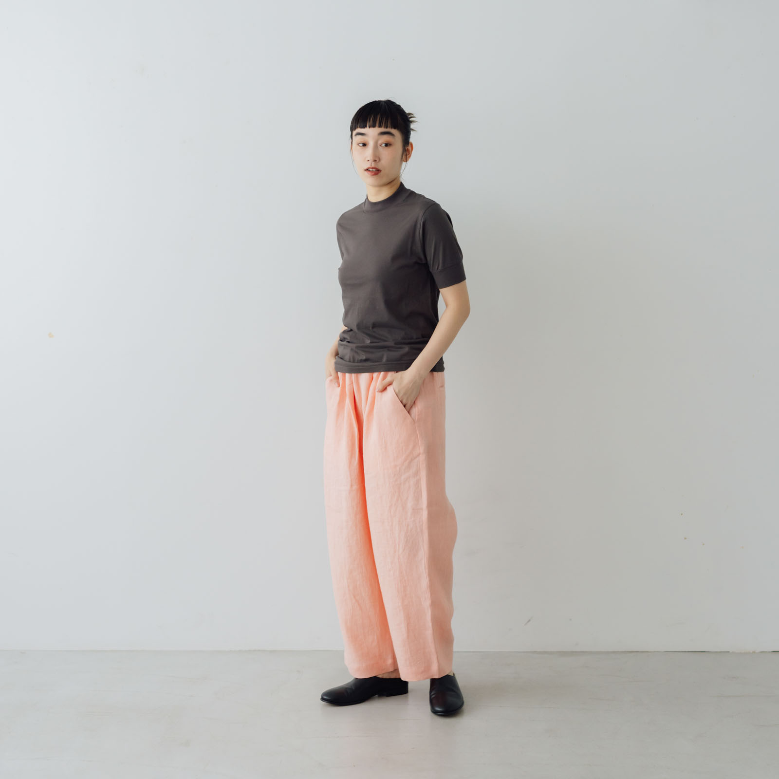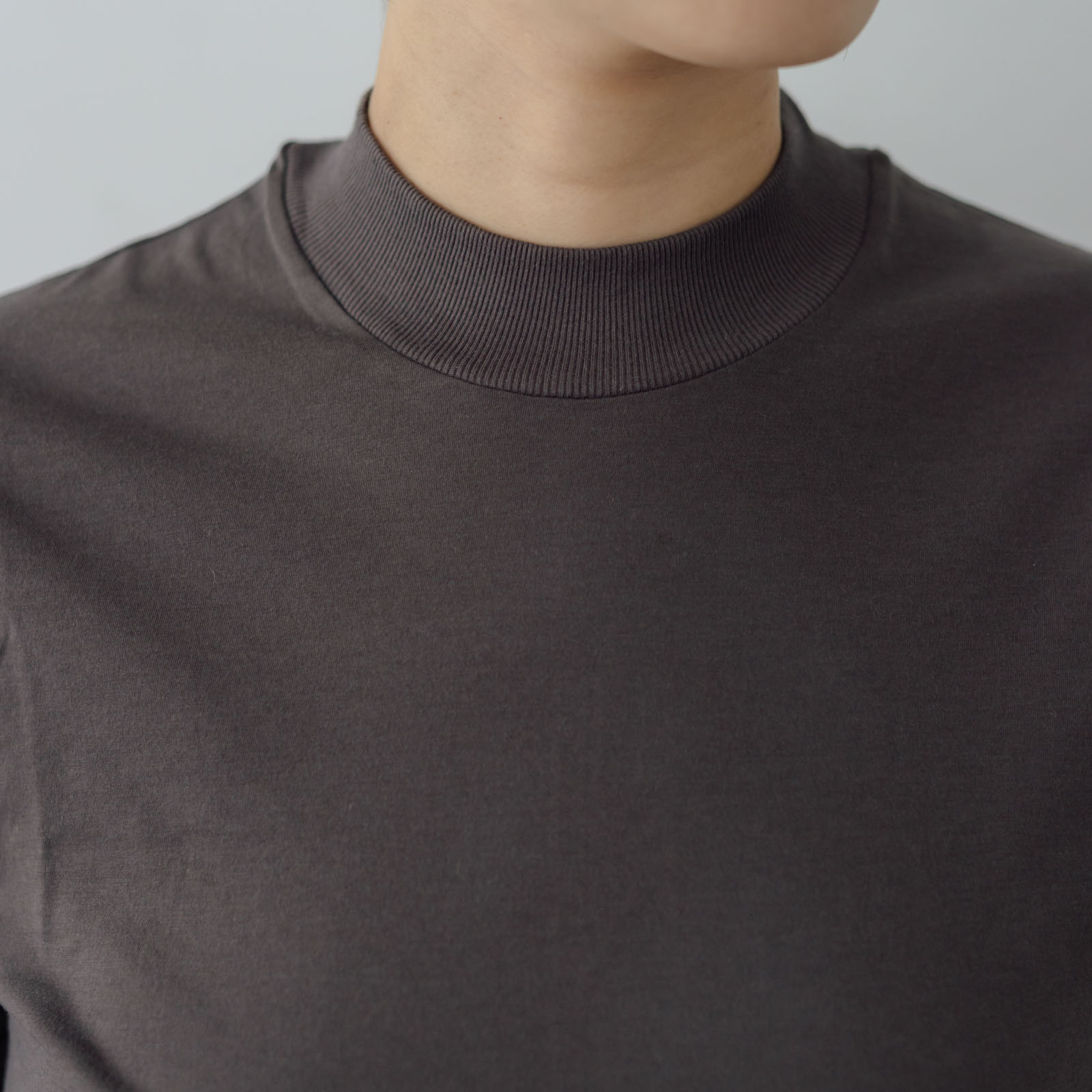 気になる首元をしっかりカバーしてくれるモックネックデザインは、顔まわりをすっきりと見せてくれます。