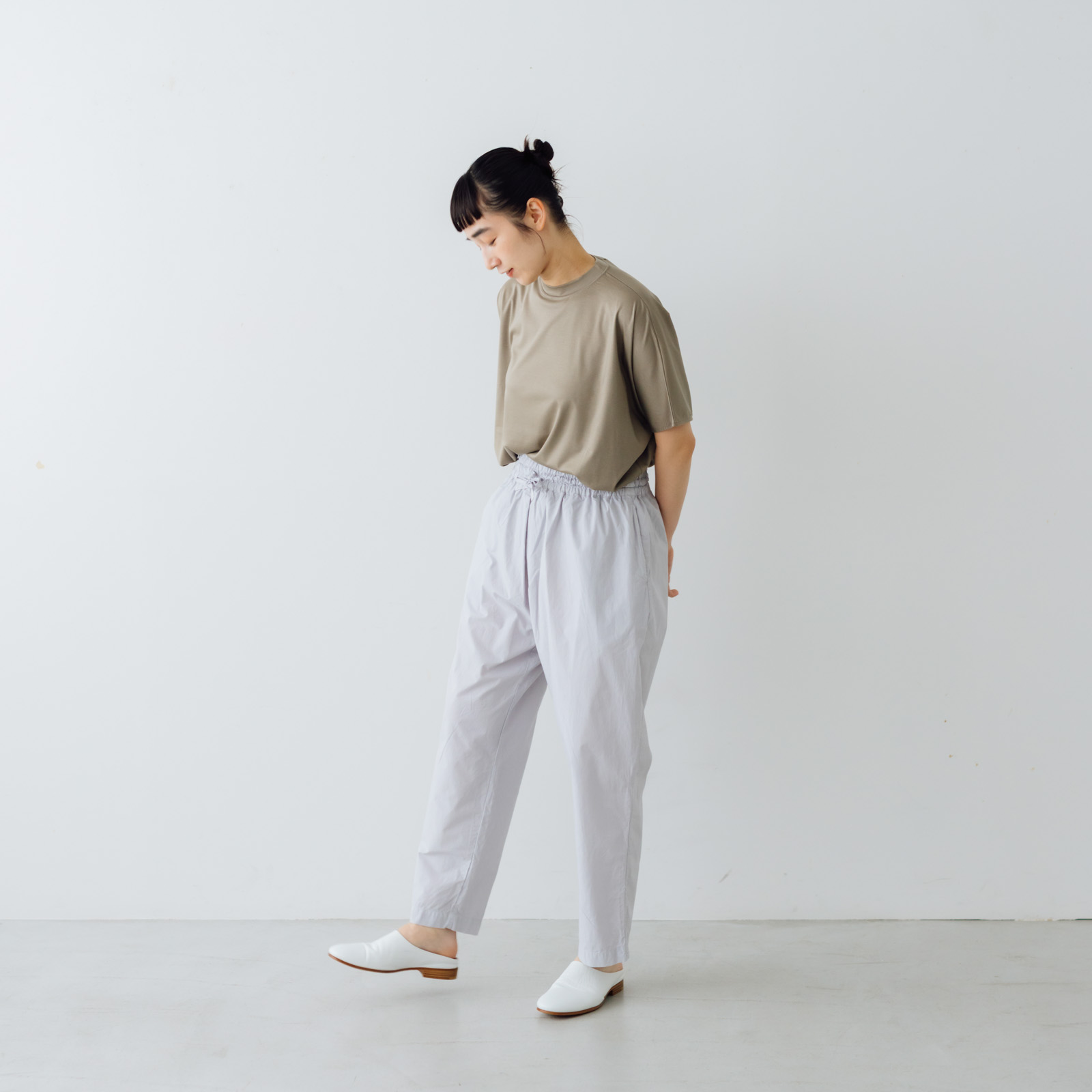 シンプルな形ながらも、ほどよい立体感が生まれ、Tシャツのような気軽さの中に、さりげない表情を添えてくれます。