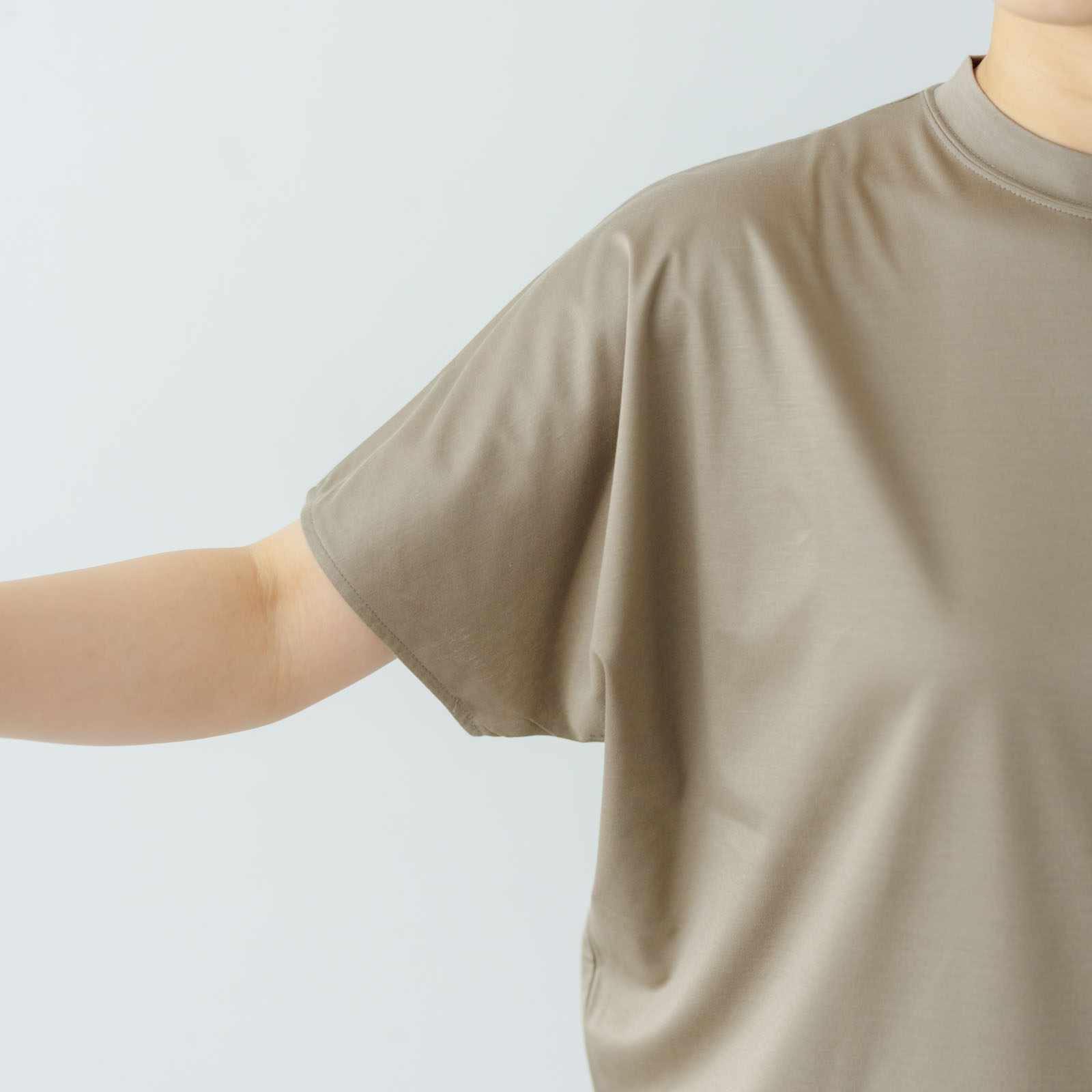 ゆとりのあるドルマンスリーブが、肩まわりや腕を自然にカバーしてくれます。