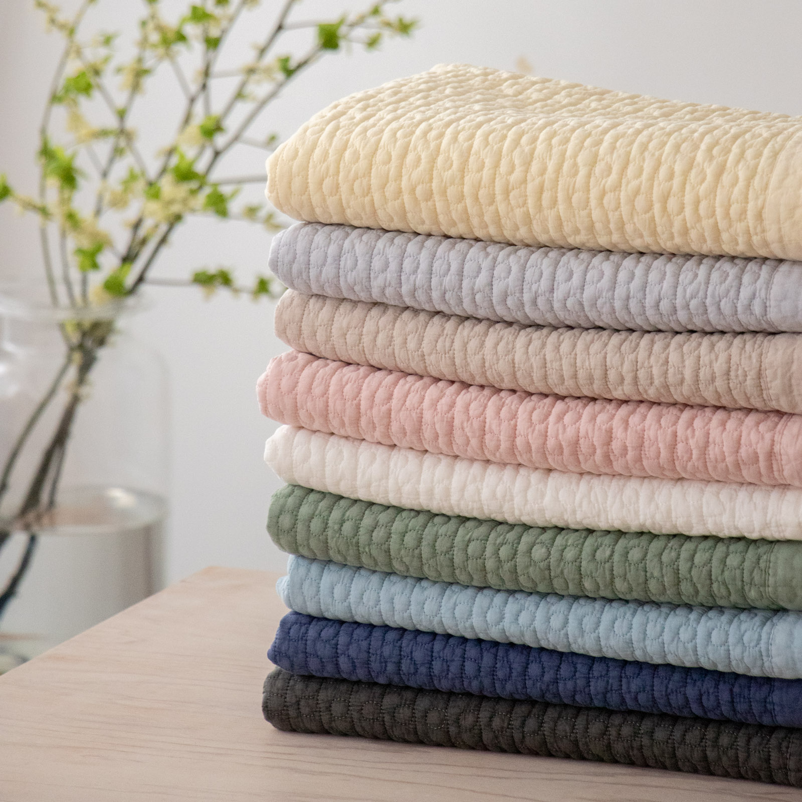 ご自宅で丸洗いできるので、いつでも清潔に保てるのもうれしいポイント。ソファーカバーや寝具としてはもちろん、軽やかなのでピクニックやアウトドアにも活躍します。汚れても、そのまま洗濯機で気軽にお手入れできます。
