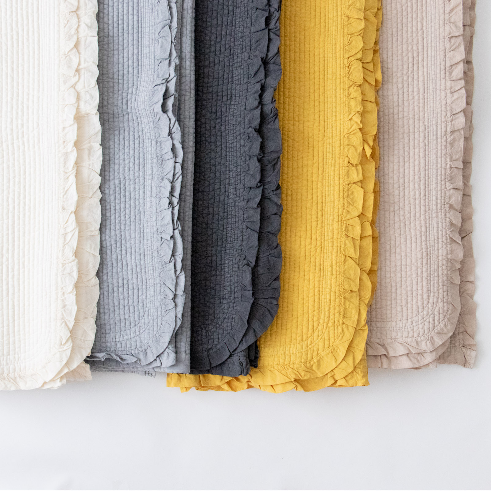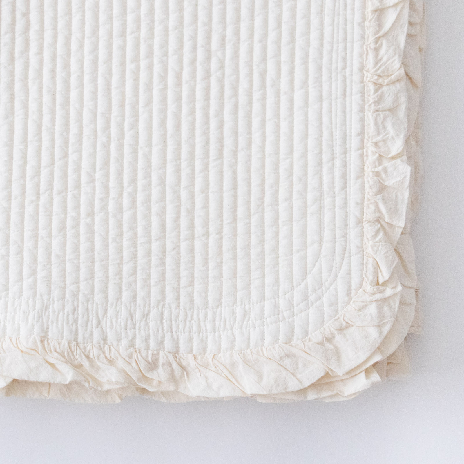 縁にはフリルをあしらい、ナチュラルな雰囲気のなかに、ほどよい愛らしさのある華やかなデザイン。長く暮らしに寄り添ってくれます。