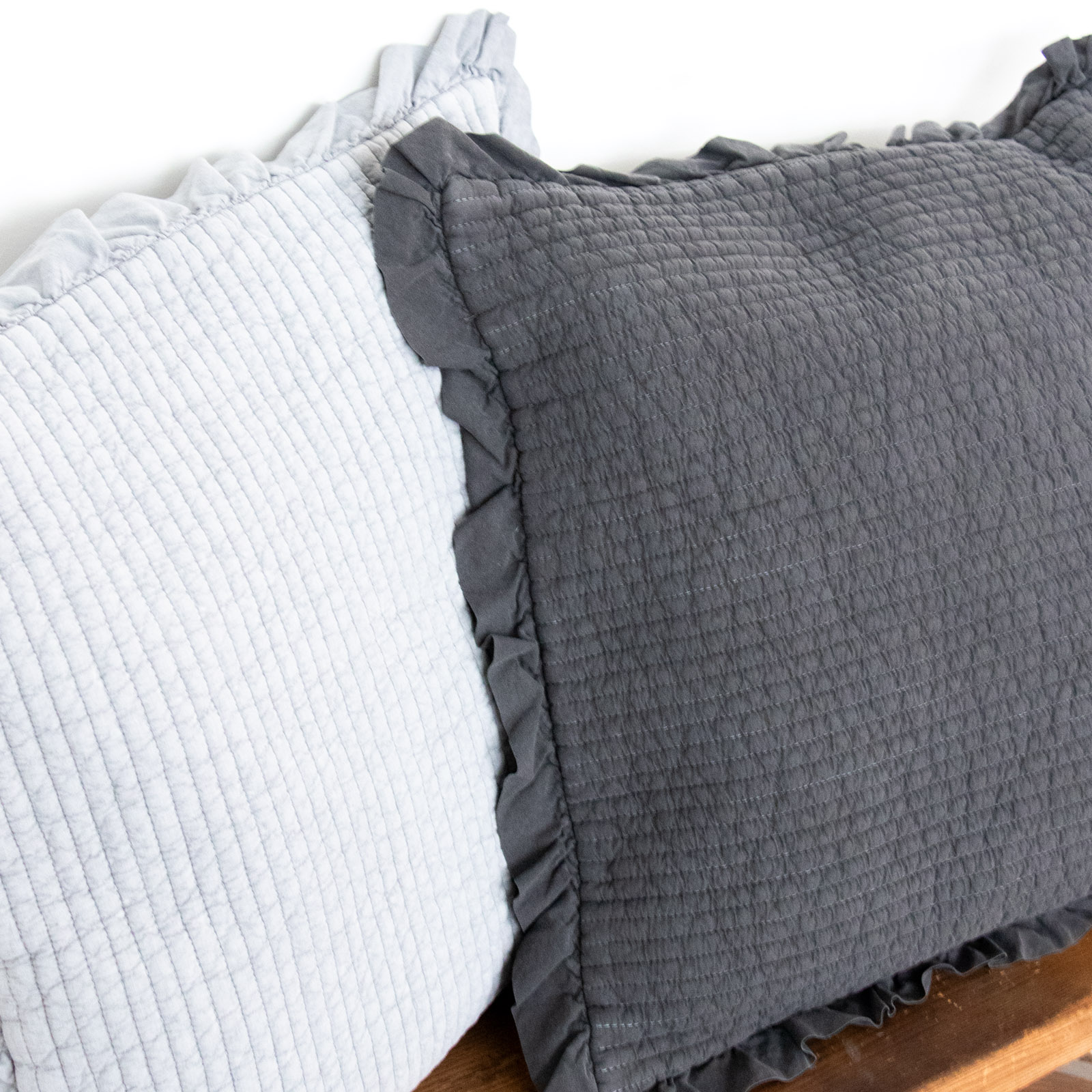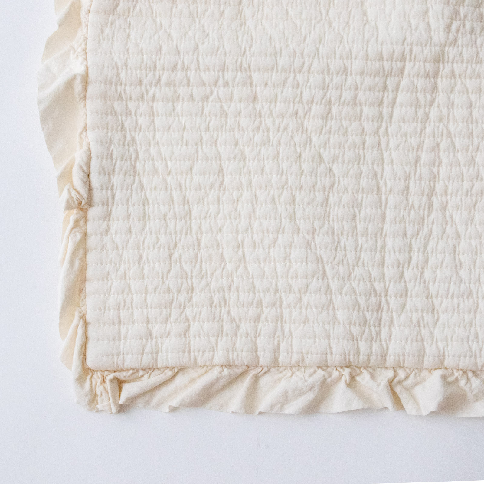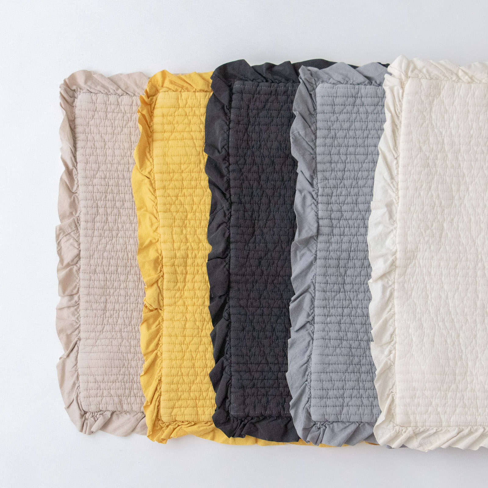 縁にはさりげないフリルをあしらい、甘すぎず、ほんのり愛らしい印象に。ソファやベッドまわりに置くだけで、空間にやわらかな空気を添えてくれます。