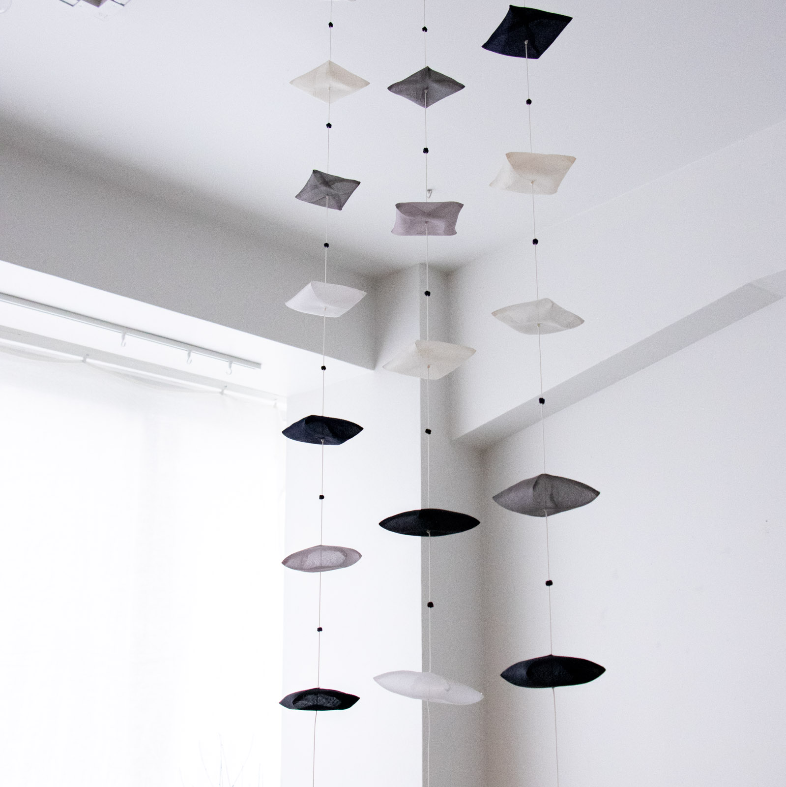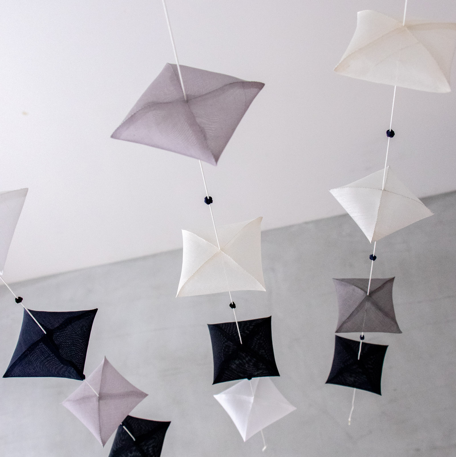 暮らしのなかに、そっとやさしい動きを添えてくれるモビール。ポジャギ作家・繭子さんの作品です。