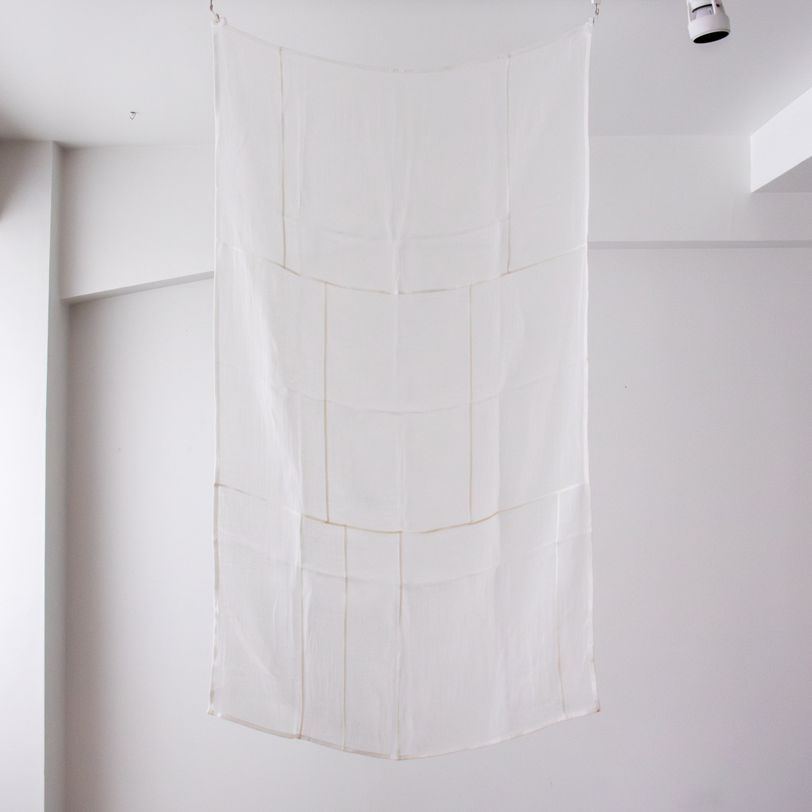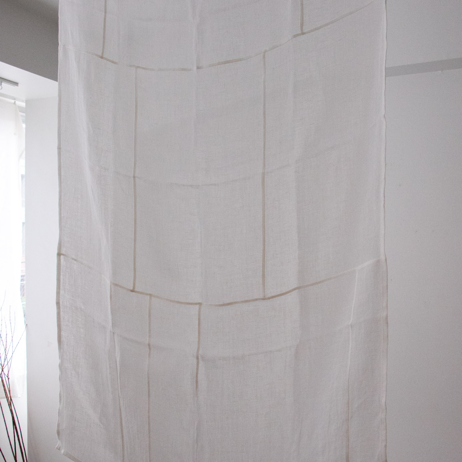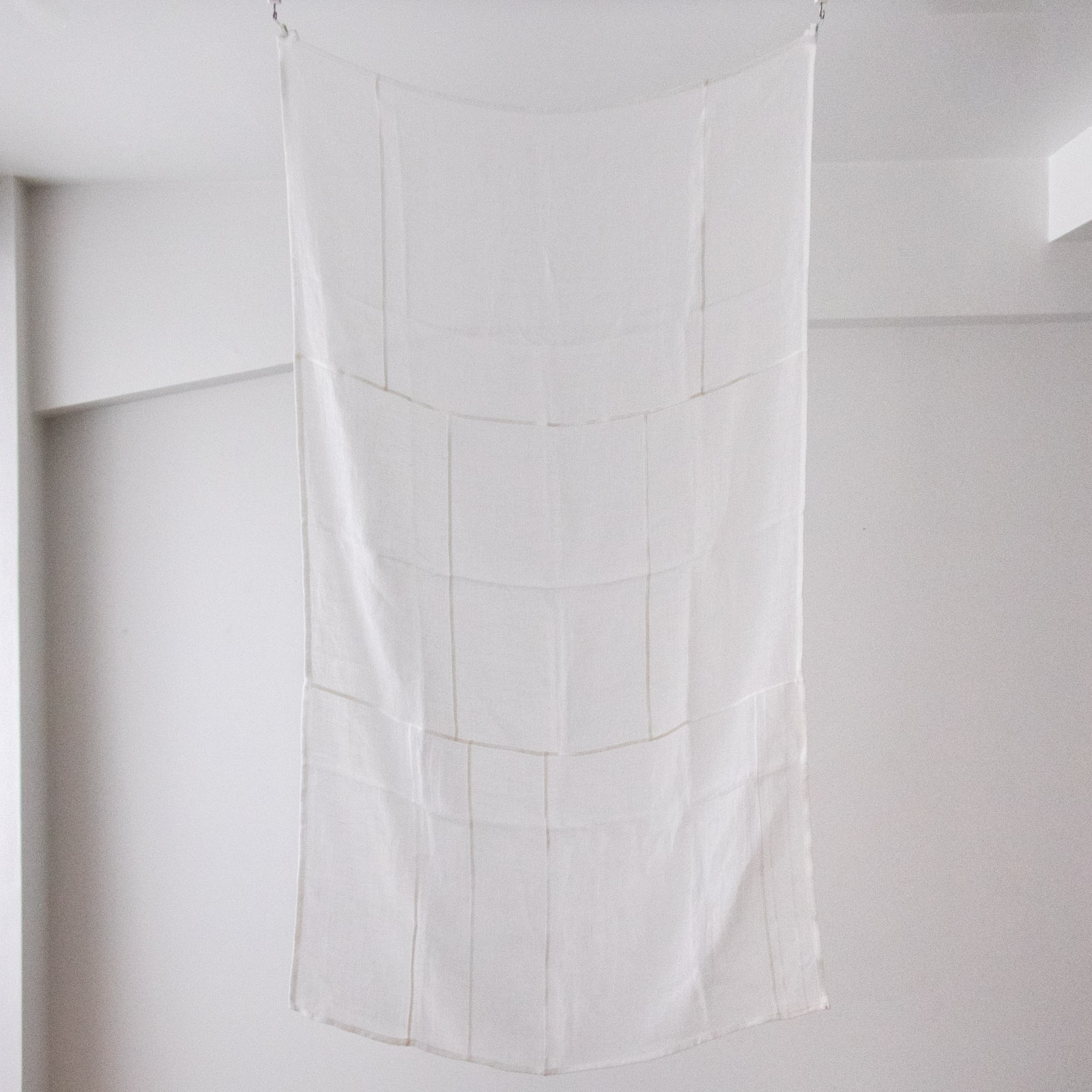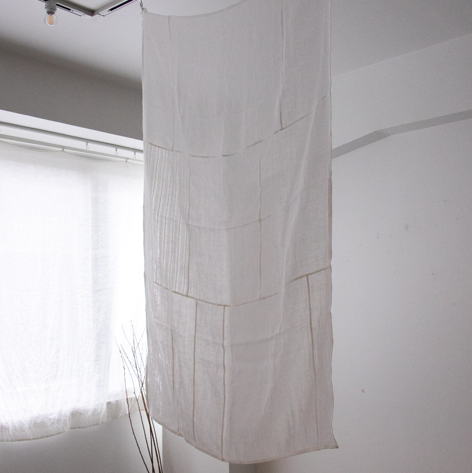 窓辺に掛けて光を透かしても、壁に掛けても、間仕切りに、ソファにふわりと、テーブルクロスに。たて・よこ、表裏、掛け方に決まりはありません。