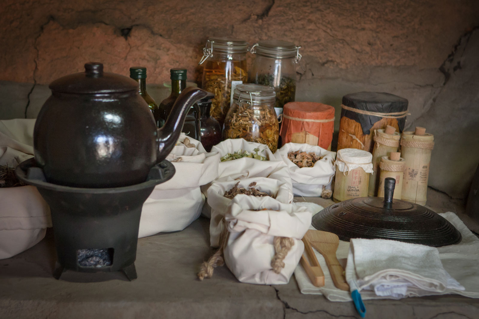 天然のエッセンシャルオイルやハープ、竹筒、韓紙など、コウンジェにふさわしい材料を見つけるまでにたくさんの試行錯誤があったそう。
