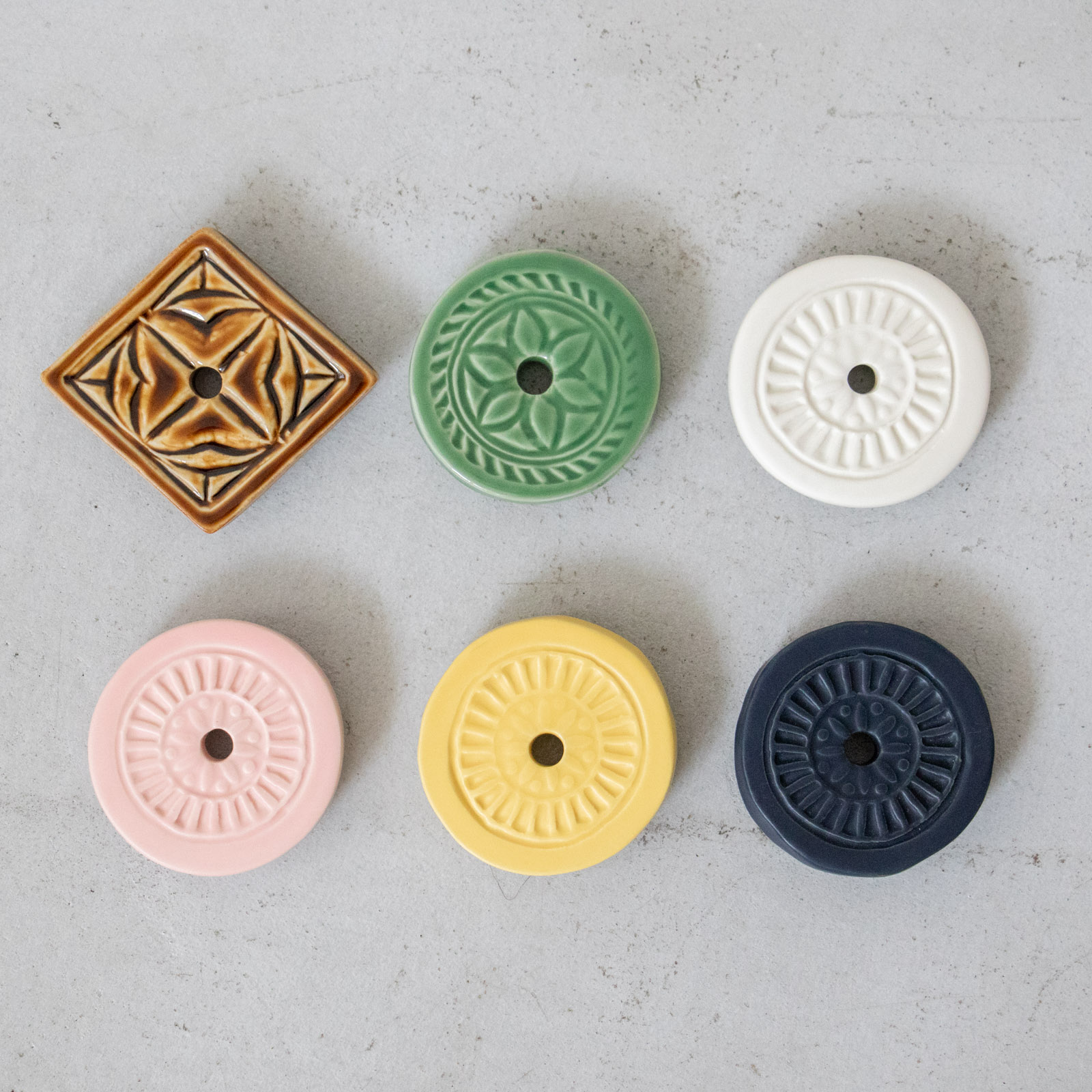 菊花や風車のようなかたち、ひし形のデザインなど、それぞれに異なる表情があり、器のような美しさも感じられます。