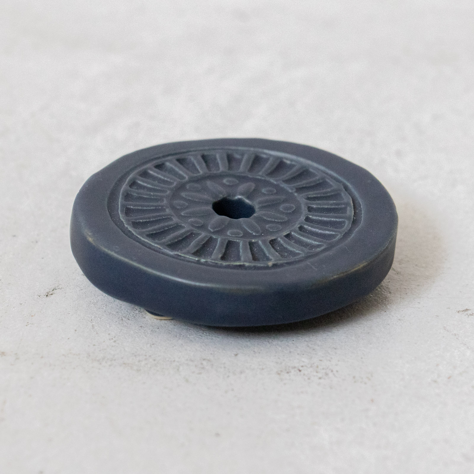 この石鹸置きは、中央の穴と、ほどよい傾きによって水切れをよくし、清潔な状態を保ちやすくつくられているそう。