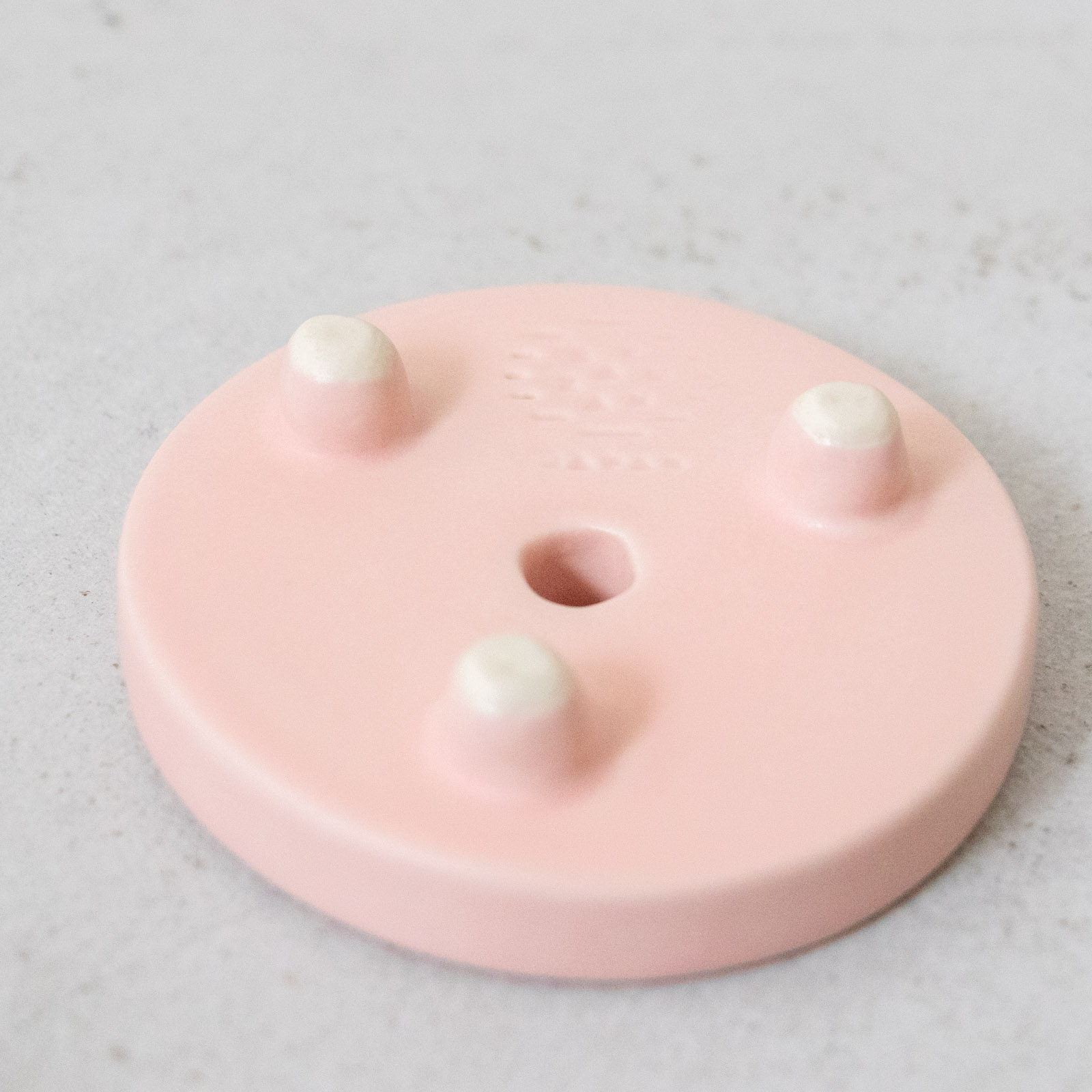 コウンジェ石鹸のためにつくられた、専用のカラフルな石鹸置き。+hanさんが、作山窯に依頼してつくられたものです。