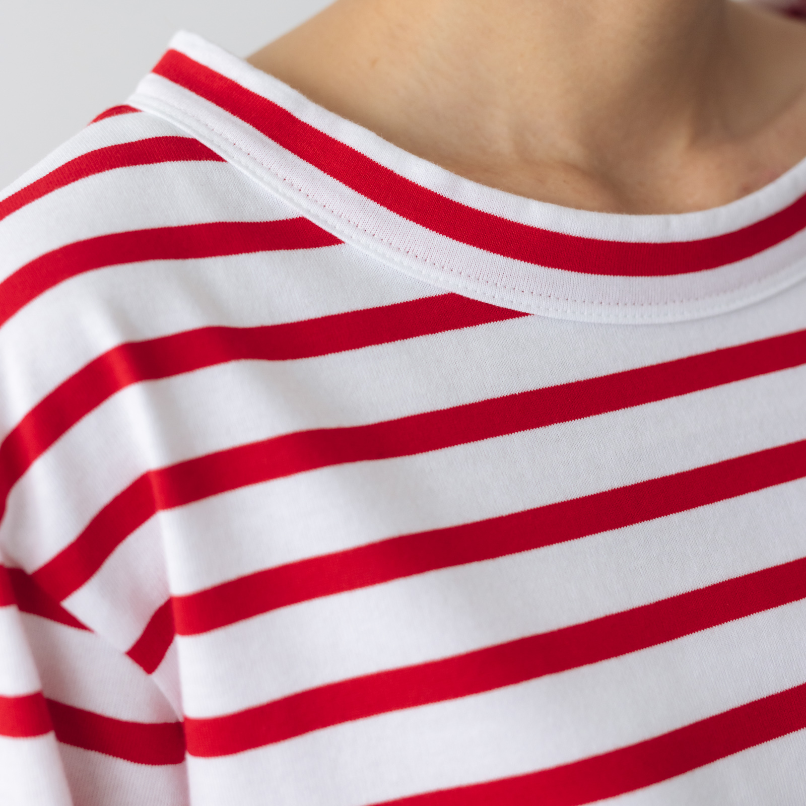 いつものボーダーコーデが一気に華やぐ新鮮なカットソーが登場です。