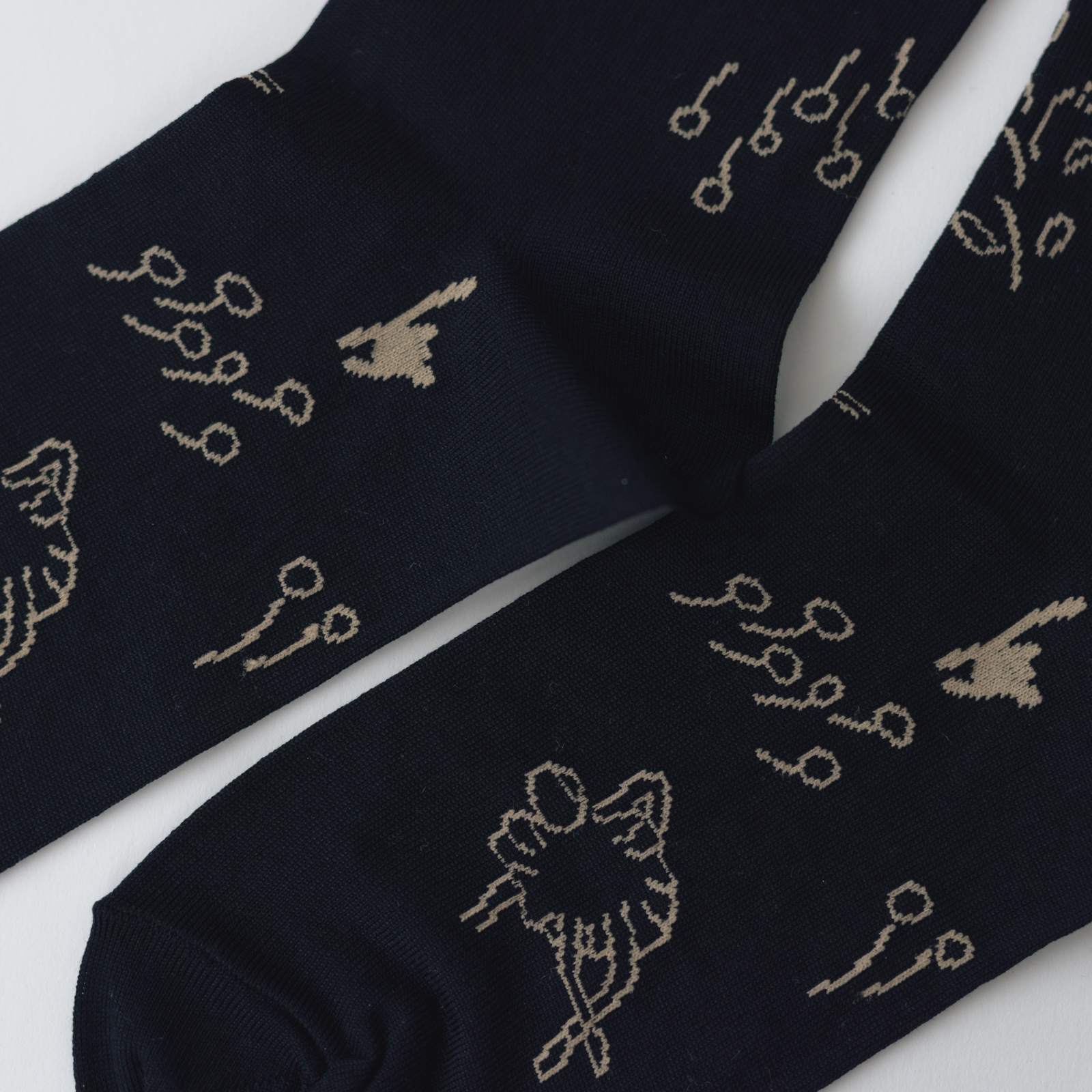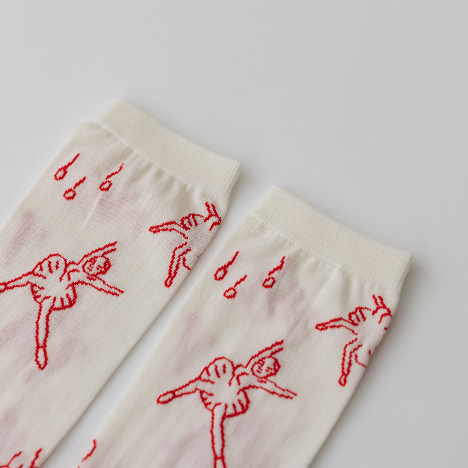 舞い踊るバレリーナの姿が描かれた個性豊かなソックス。