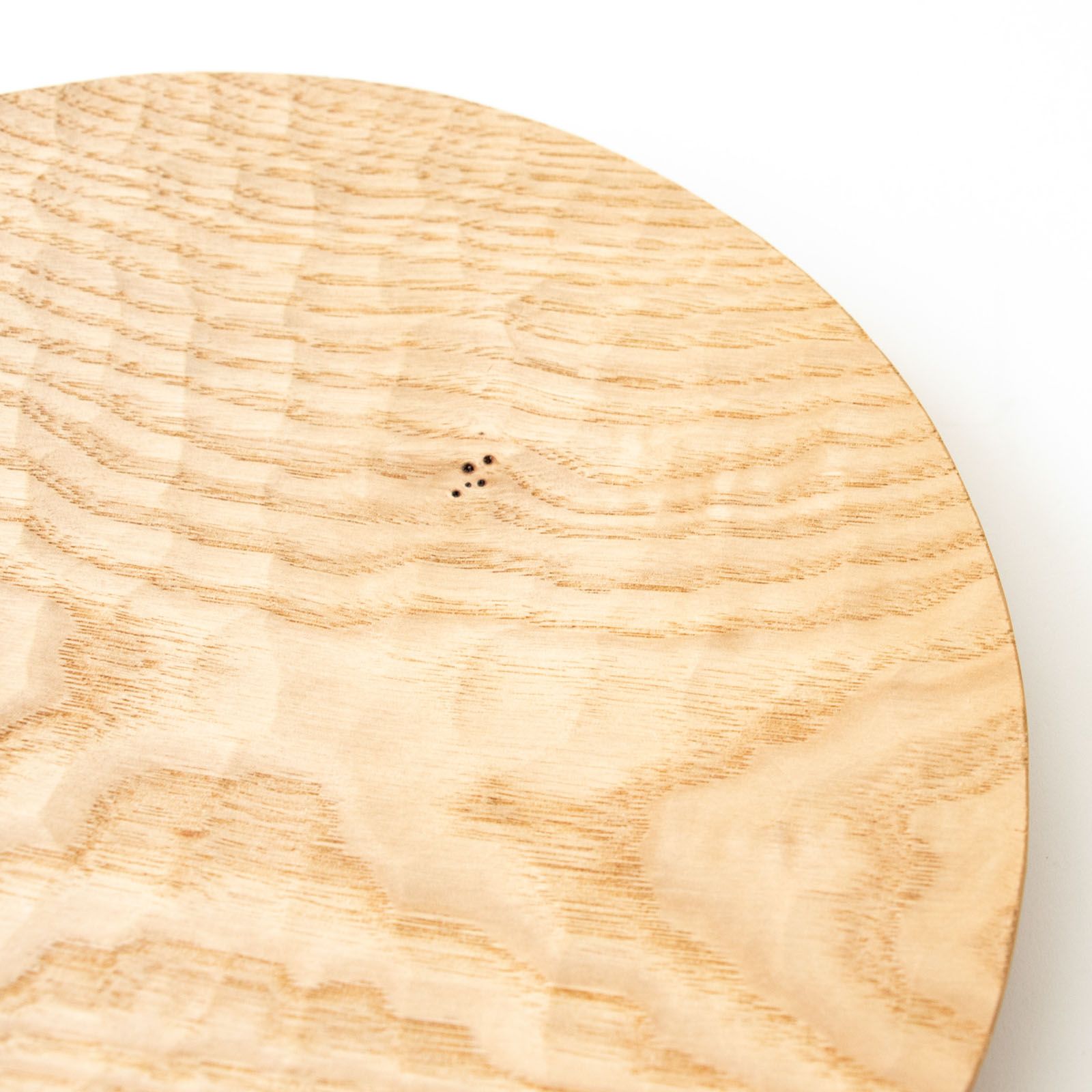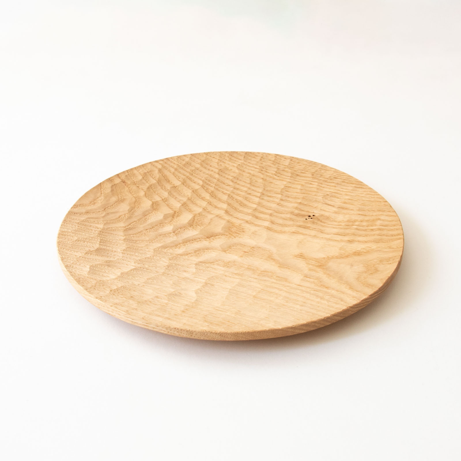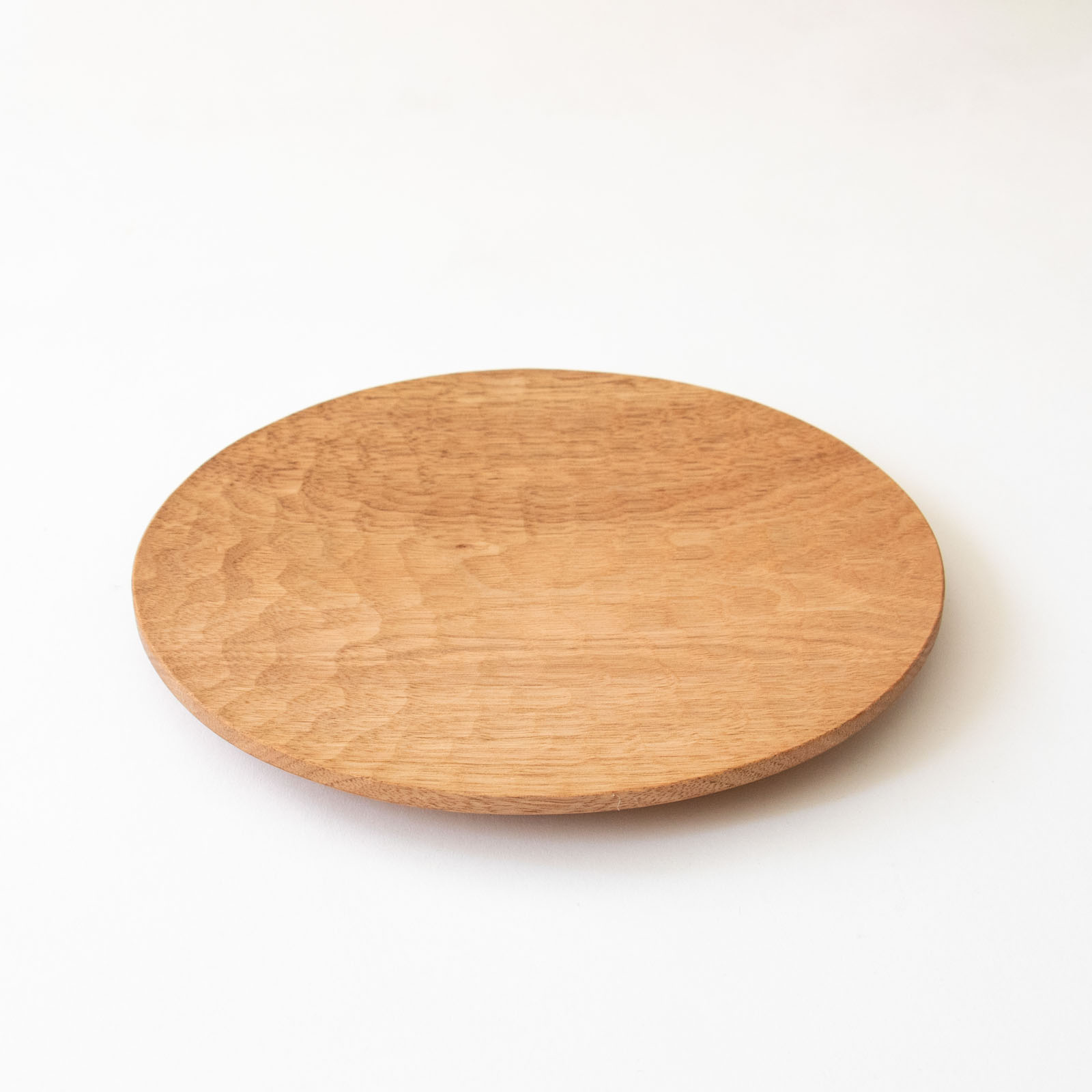 ふたつと同じものがない木目や、手仕事を感じるノミの跡が美しいプレートは、食卓に登場する度にうれしくなるような存在。木の節など、その木材のもつ個性もながく使っていく上で愛しさを感じます。